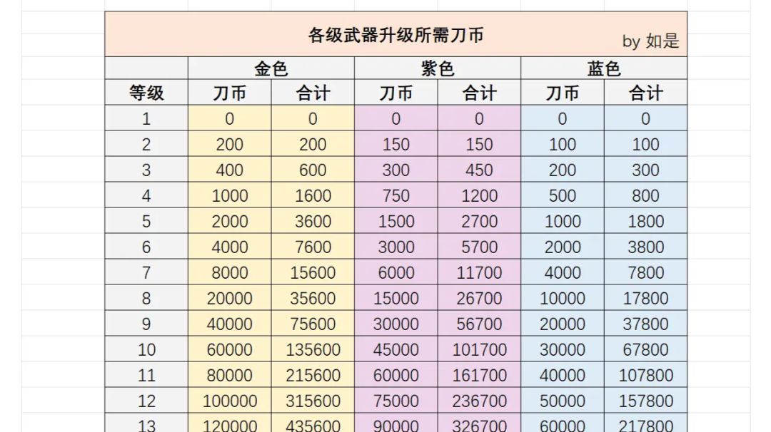 本帖定量介绍了武器的养成所需资源和等级成长数值。 首先是武器的养成所需资源: 这主要是方便一些规划,比如想要过64关,当前版本需要11琵琶,7钱袋,12戒指,11灯(个人配置举例),就可以快速通过刀币获取量算出还需要多少天可以打过✓ 同时每天的刀币没有很多获取途径,你可能困惑于为什么别人资源这么多,是哪里来的[表情_微笑][表情_微笑]这可以参考我的第二篇日常篇的资源获得贴: 减去天数和关卡的刀币