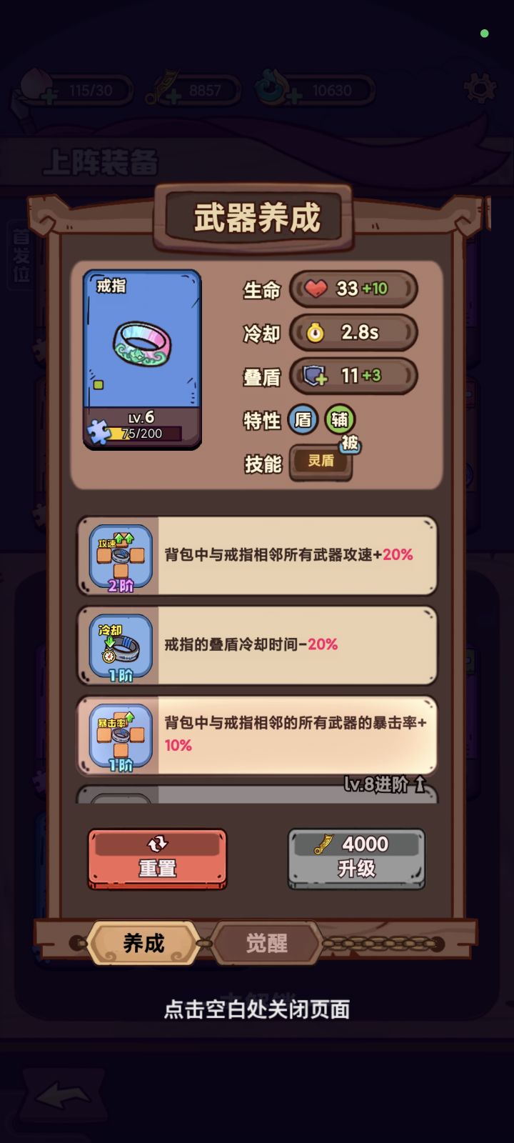 今天给大家分享一下游戏的进阶攻略,如果对于游戏机制和基础信息不熟悉的可以去查找我发布的新手攻略--随着游戏的更新和优化,我们看到上榜通关49的已经很多人了,但是还是有部分朋友有卡关的现象。这个游戏相对简单,现版本所能实现的流派,对于平民来讲,想要通关公式也很明确,混铁棍加牛魔.先上图,49章实战通关,不是纸上谈兵。武器选择还是大棒,戒指和灯为主。1.运气也是游戏的