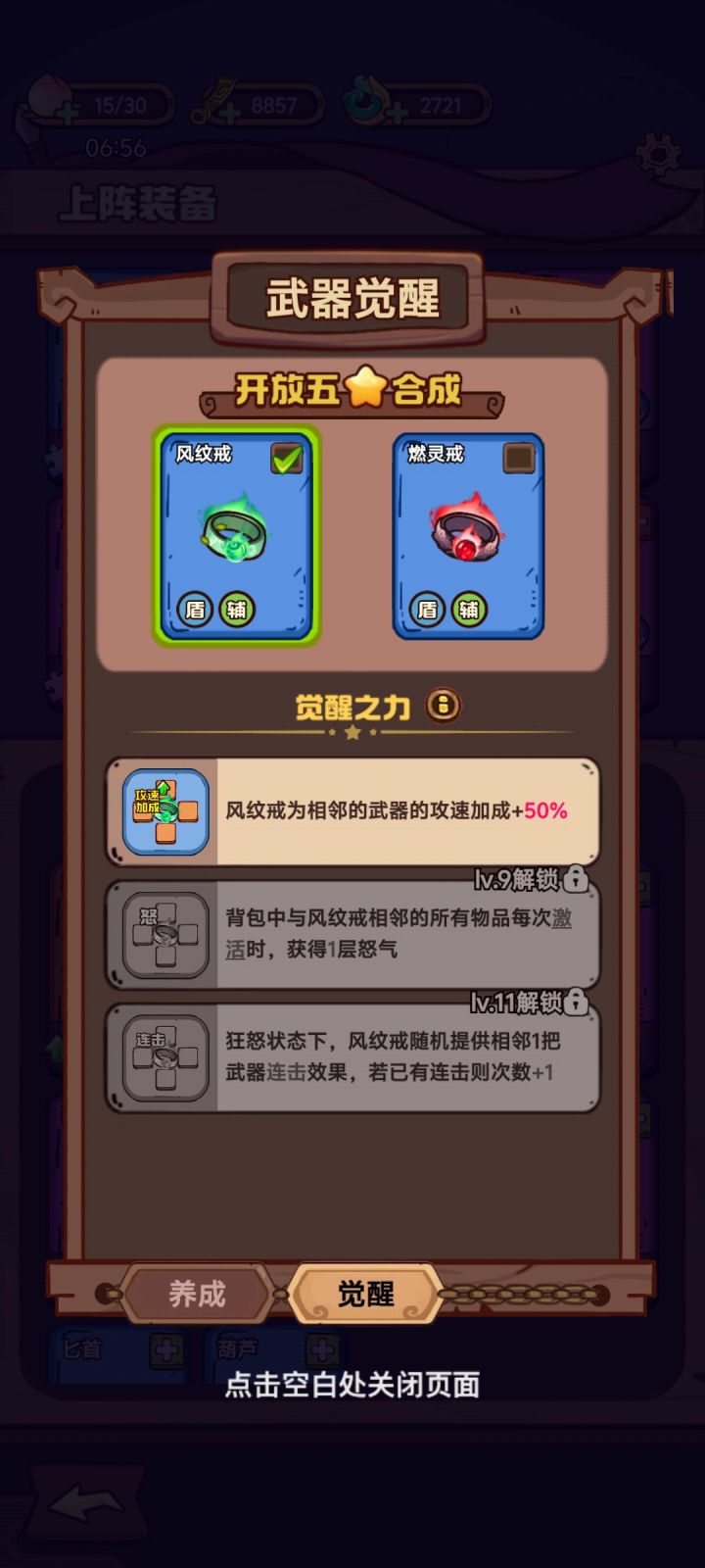 装备选择 混铁棍 记得摆在第一位 开局固定给一件 戒子,两个觉醒都可以选 具体看自己选择 灯,觉醒选择看你戒子选择 燃灯选火戒子,反之选风戒 钱袋,不用介绍了,经济来源 钟,前期过度,可以降低猝死几率 大概可以秒怪就可以丢弃了其他装备随意 抽数量的后期推荐位置摆放 伤害可以轻松到2W#武器请上场 #武器请上场攻略 #请武器上场 #请武器上场攻略