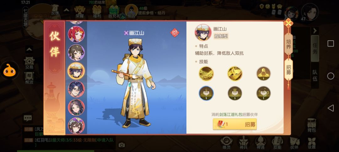 在看后面问题前,老白抛出一个问题问问玩家们,离火之境一共有几名伙伴可以招募?一共有几名伙伴可以上阵?第一个问题的答案是17名伙伴,第二个问题的答案是4名伙伴!如果你答错了,没关系,老白接下来全方面地教你悟透伙伴系统! 一、伙伴基础系统介绍 1、伙伴技能 每名伙伴有6个技能,但和人物的技能不同,伙伴的技能基本都为被动技能,主动技能仅有1-2个,玩家在上阵一名伙伴前,不仅要看伙伴的主动技能强度,还要留