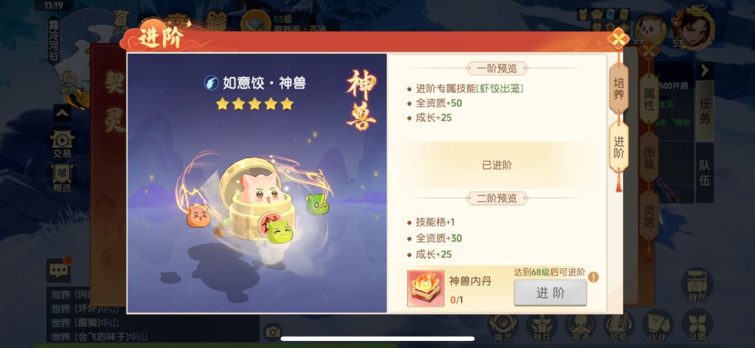 神兽 : 鱼(主流大都是配速)猫(pk)凤凰(妖王+战场)武士(pk)狐狸(主流大都是配速)饺子(挂机专属) 神通 : 可以考虑准备两套,一套优先属性,一套优先特技+特效,神通洗出能放入背包的优先放入背包(能随时随地替换) 宝宝养成 : 65之前的宝宝过渡就行。配速骰子比较重要然后尾速乌龟看个人喜好,主要优先养鱼,凤凰或者其他神兽,再然后是普通宝宝保证有三只先。 神兵 : 优先开两套方案,交替着洗