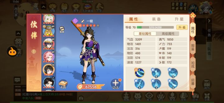 定位:紫色高速物理群攻,一速爆发,打完需休息 1 回合,是现版本八方竞技场防守利器。核心技能主动:群体高伤,一速出手,压低血线。离场:神木庇佑,全队减伤 buff。功法推荐袭影、疾攻、碎甲(拉速 + 增伤 + 破防)视需要佩戴装备(高力量)武器:高物攻 / 力量,暴击物衣服:高力量,归元 / 弥坚鞋子:高速 / 力量,疾速潜力加点五力,有被动存在,装备稍微好一点就可以优先出手