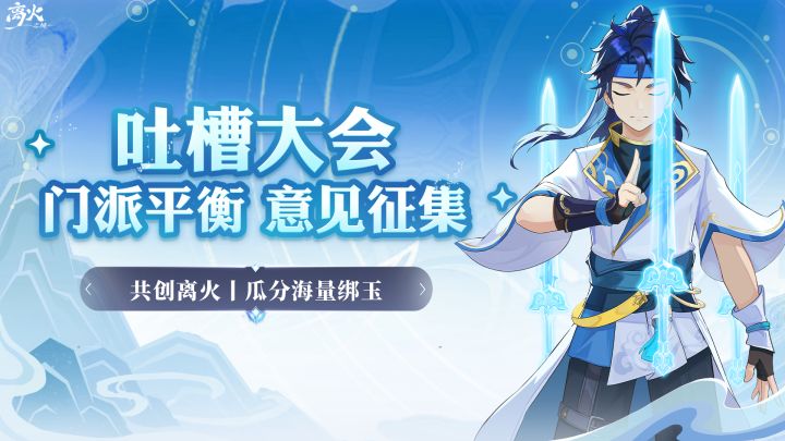 嗷呜~寻火者们大家好呀,我是阳光明媚就喜欢摇摇尾巴的老白白~继昨天发布了伙伴战斗平衡问题的征集后,离火大陆上的每一位寻火者都非常热情的想为咱们的美好离火出一份力,老白我真是太感动啦٩(๑>◡<๑)۶!同时老白了解到寻火者们对【门派职业平衡】相关的内容有非常多的想法呢,为了可以给寻火者们带来更好的游戏体验,老白我也迫不及待想要开启吐槽大会第二期征集啦~本次吐槽大会希望大家可以把【门派职业平衡】