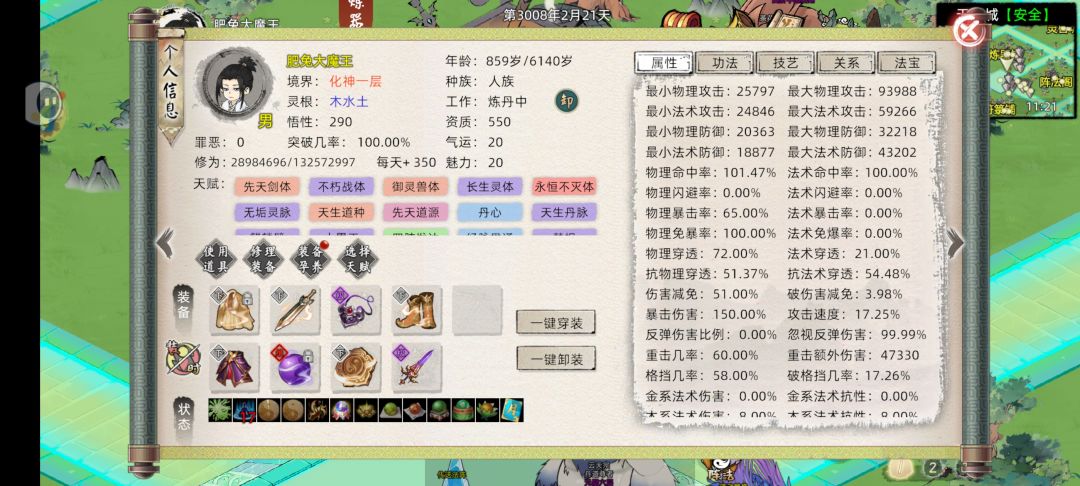 灵根:木水火5 天赋:御兽20,念头通达10,丹心5,经脉贯通5,追求长生5,懂王2 主修功法:血灵4级,天河4级,九炼5级 功德花费:52点 功德获取:筑基6层(42),月卡5,木鱼5,共52点装备需求:难度不大,需要吃鱼 天道筑基的20点属性换不朽战体和无垢灵体, 结丹需求:下品结金丹一枚 结丹三关:没有装备需求 渡雷劫说困难也简单,多买点回春符,设置好自动喝红喝蓝的保护,抗不住了就用回血技能