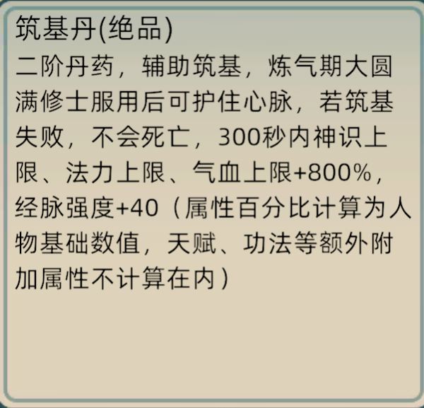 其实可以把突破丹当大力丸吃且时间长效果好没副作用练气大满百分百是一万八血绝品筑基丹效果是百分之八百相当于十几万血不下只要学几个高伤的金丹没回复技能莫得问题的(其实个人感觉筑基杀元婴更有可能筑基解除大部分三阶神通并且有法宝加持)