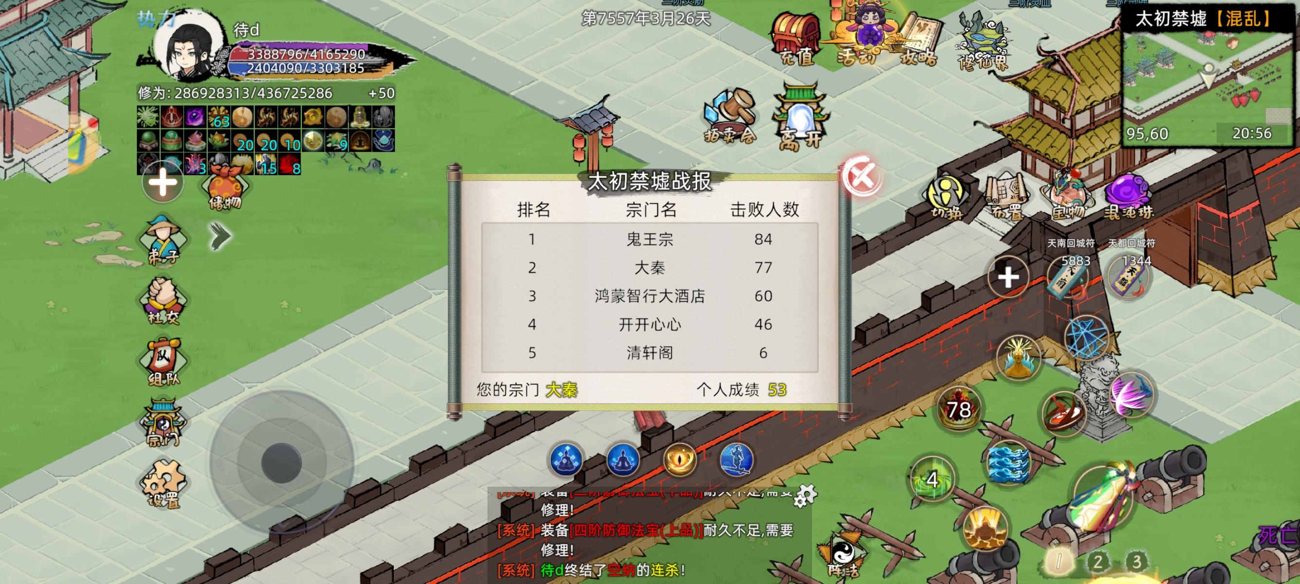进入洞府后切换弟子视角发现一堆人跑来跑去,一看名字才发现全是我的弟子