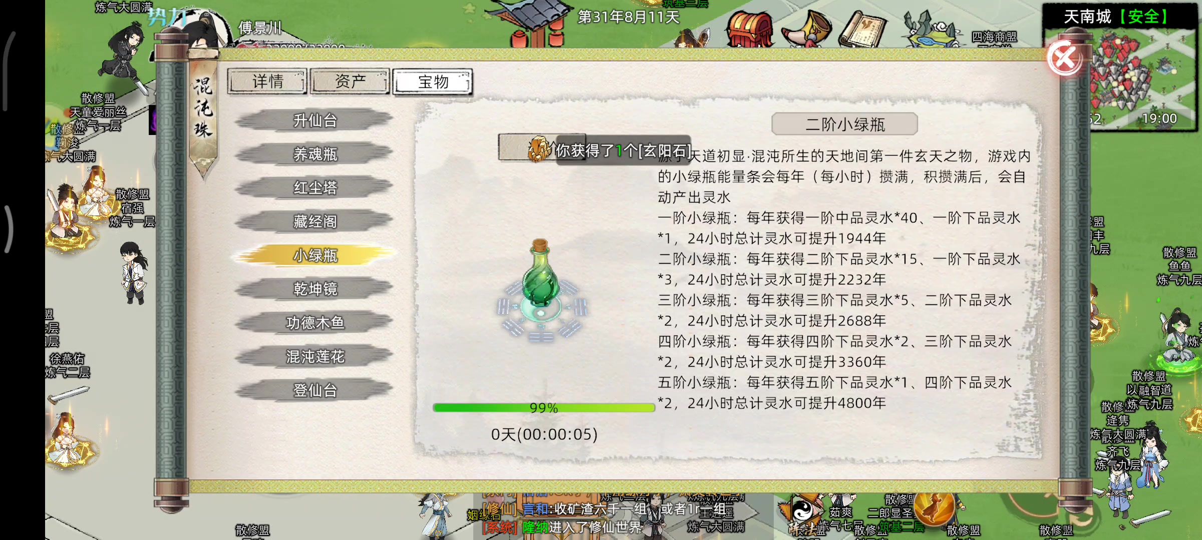 费钱费灵水升级的小绿瓶,早上十点就升级到晚上一直都是一阶的灵水。反馈了一天
