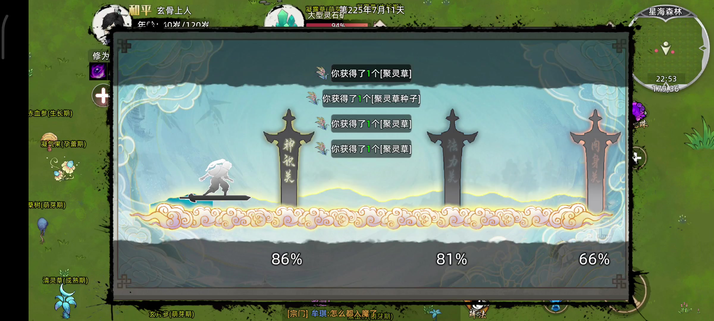 没吃药天道金丹失败,以为和筑基一样不吃药才是天道突破,结果才知道是打过了雷劫就是天道金丹,吃不吃药都一样,玩了这么多天服务器太不稳定了天天维护,一天维护好几次玩累了,没几天就关服了,正式服再玩算了,心累[表情_汗]#修仙家族模拟器2 #修仙家族招人模拟器2
