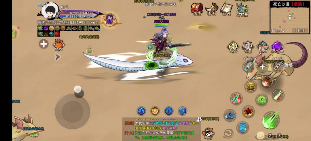 依旧是仙族合欢的大战,合欢宗重夺太初权柄。依旧是空间的大战,没啥法宝剑修的我只能看两眼他们打,偶尔上去来两下无伤大雅的剑招[表情_泪目],剑修还是风剑好,打两下还能隐下身,额,嗯,对,诸位道友之后如果条件可以的话还是空间吧[表情_嫌弃]。#修仙家族模拟器2 #修仙家族模拟器2