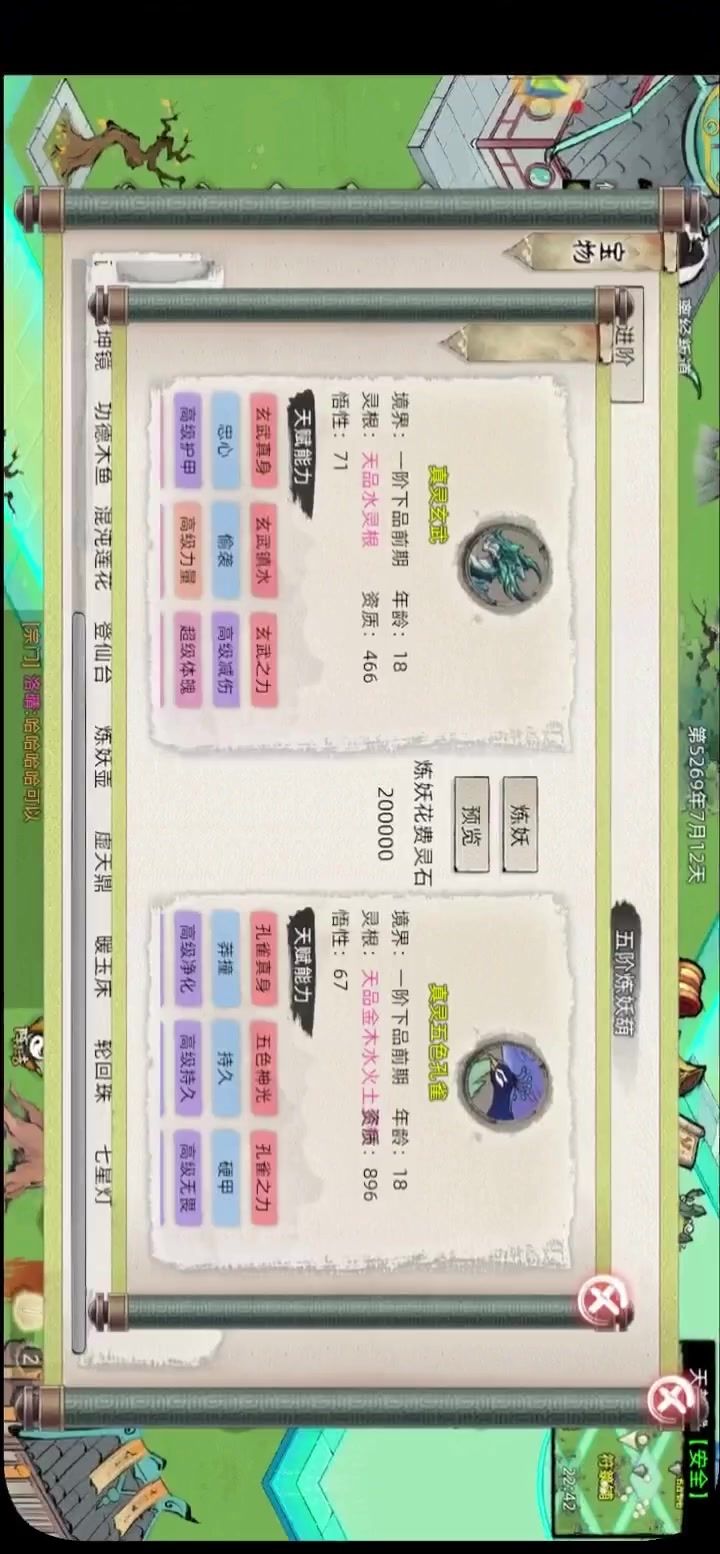声明一下此次合成在炼妖壶刚出没多久的时候合成的合成之后便已经退游,我想表达的是作者在开发各种游戏道具以及游戏数值材料消耗和氪金道具淘汰周期都是存在不合理的,还有后期出的各种bug作者对这些bug视而不见敷衍导致的,我发表的这个视频存在三种情况首先是开发的游戏道具存在明显的问题床只能普通宠进行生育真灵不行这个我能理解作者怕真灵数值太变态,再者是后面出现的bug战令丹的真灵天赋可以无限继承生下了那我想
