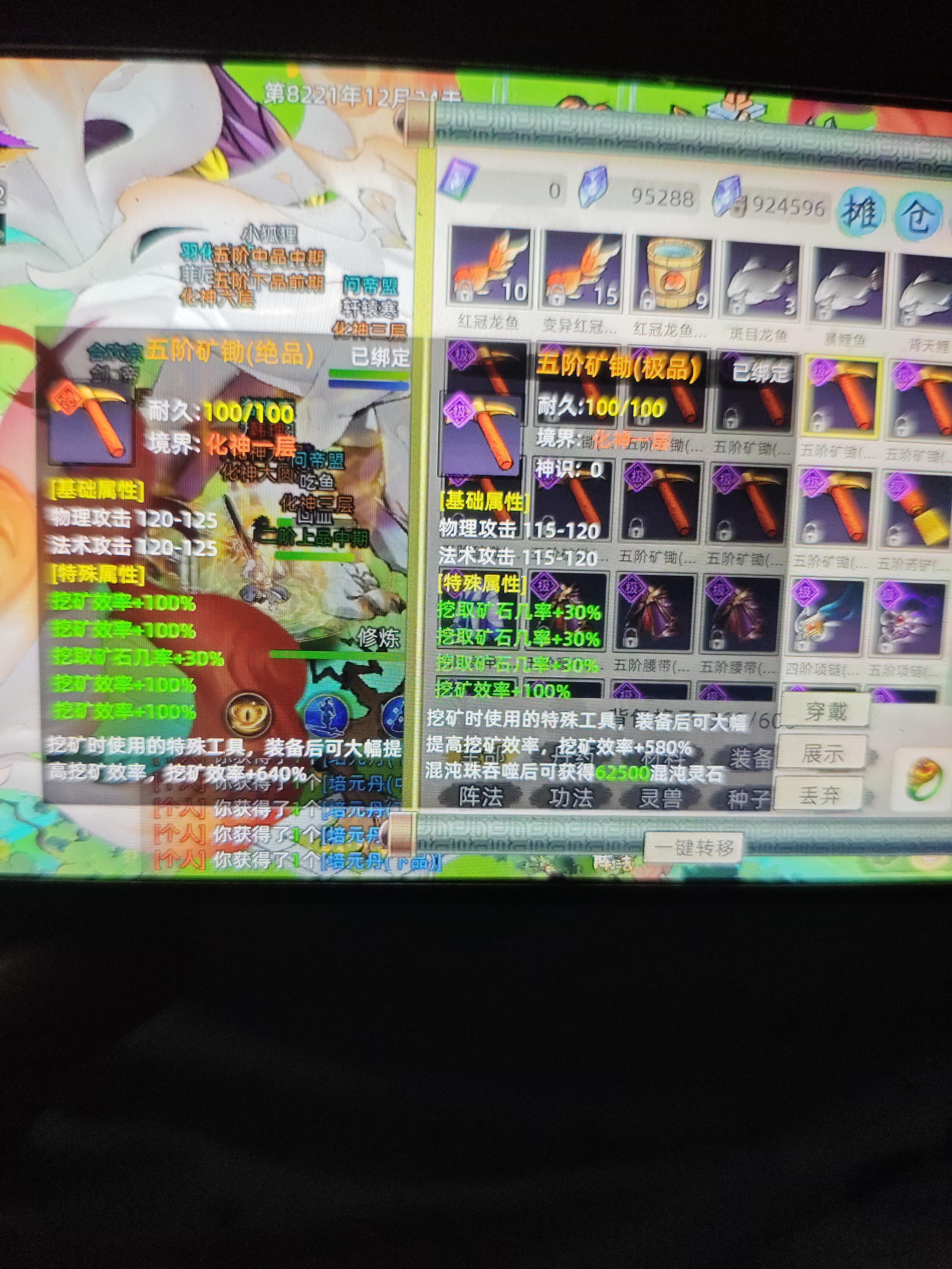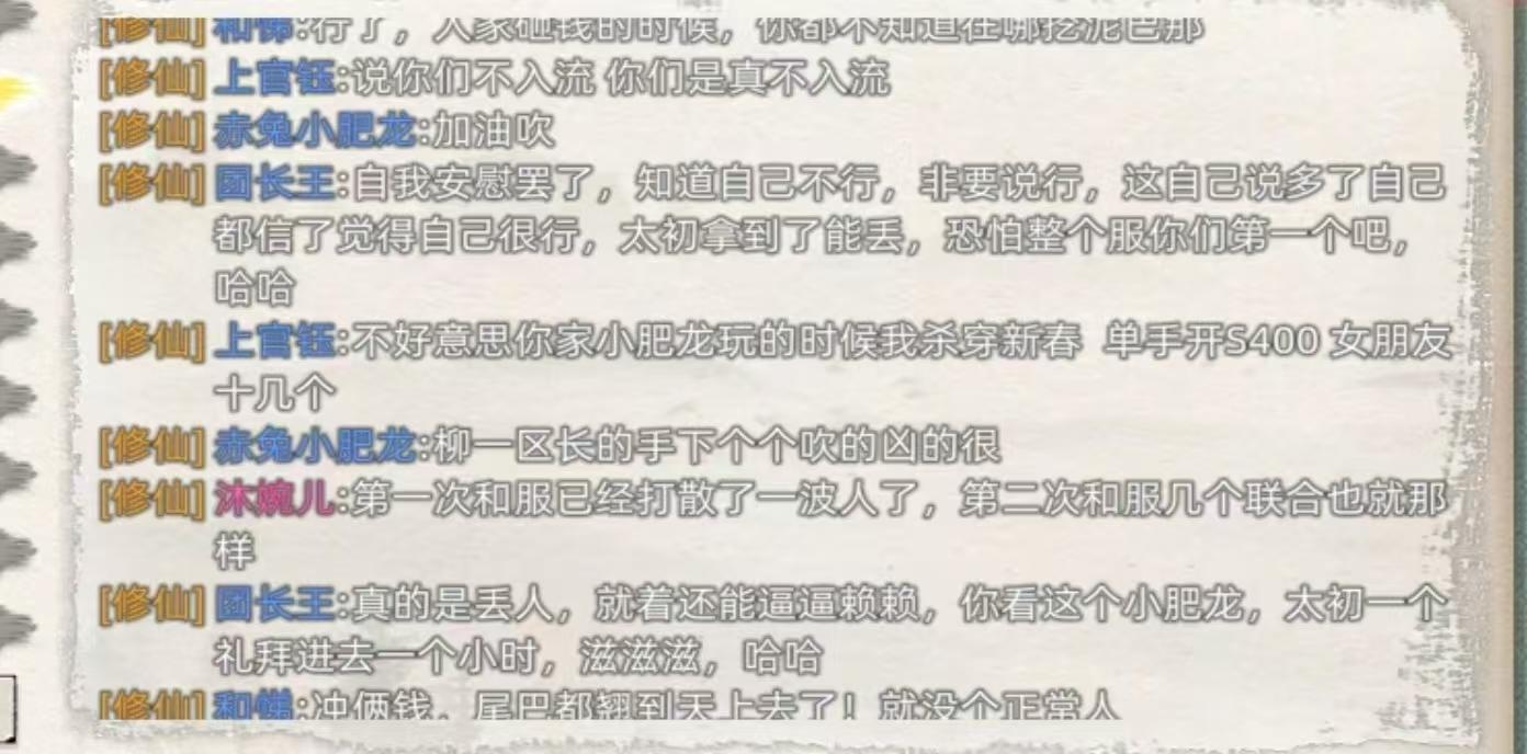 纯纯霸区号 4把五阶50流云 两把五阶本命防御 本体无漏198层 天青 炼神叠 天尊 彩环 11个化神弟子 二代弟子已经培养成型 宠物天品五行25红20粉马上完工 目前有个18红宠物过度 材料爆仓 混沌珠灵田 全部拉满 目前还剩7000万混沌 本期战令拉满了