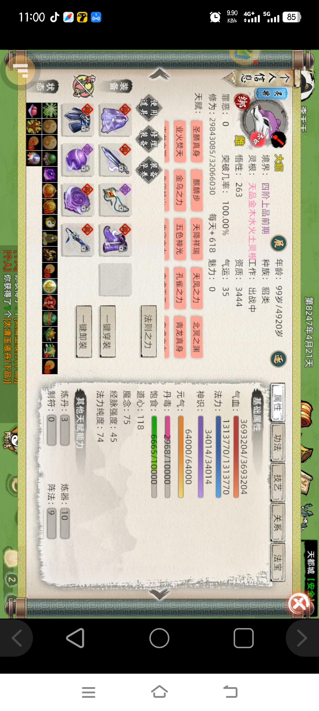 纯纯霸区号 4把五阶50流云 两把五阶本命防御 本体无漏198层 天青 炼神叠 天尊 彩环 11个化神弟子 二代弟子已经培养成型 宠物天品五行25红20粉马上完工 目前有个18红宠物过度 材料爆仓 混沌珠灵田 全部拉满 目前还剩7000万混沌 本期战令拉满了