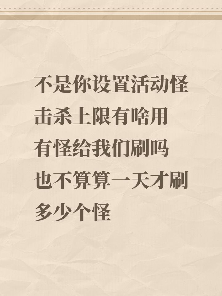 不是你设置活动怪击杀上限有啥用 有怪给我们刷吗 也不算算一天才刷多少个怪