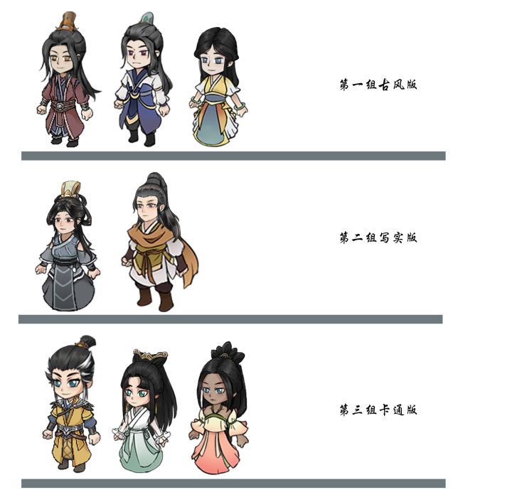 各位亲爱的道友,上次反馈的大头形象问题,我们已经进行了修改,并进行了测试风格,由于我们之前设计制作的男女主角各十套服装已经定型,并且制作动画,所以短期内衣服造型还不能修改,但是头像是可以修改的,我们这次制定了三种风格头像。希望大家可以投票选择,我们最终挑选投票率最高的一个档先行进行制作,当然可能大家觉得都不行,那也没事,我们在后续还会加强美术这块的能力,争取做到一些大家满意的形象。附带抽奖哦,