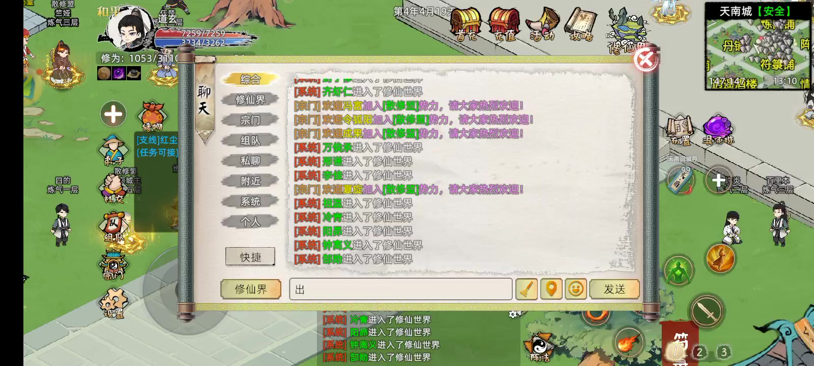 为什么不能发消息呀,只能私聊,修仙界宗门队伍都发不了
