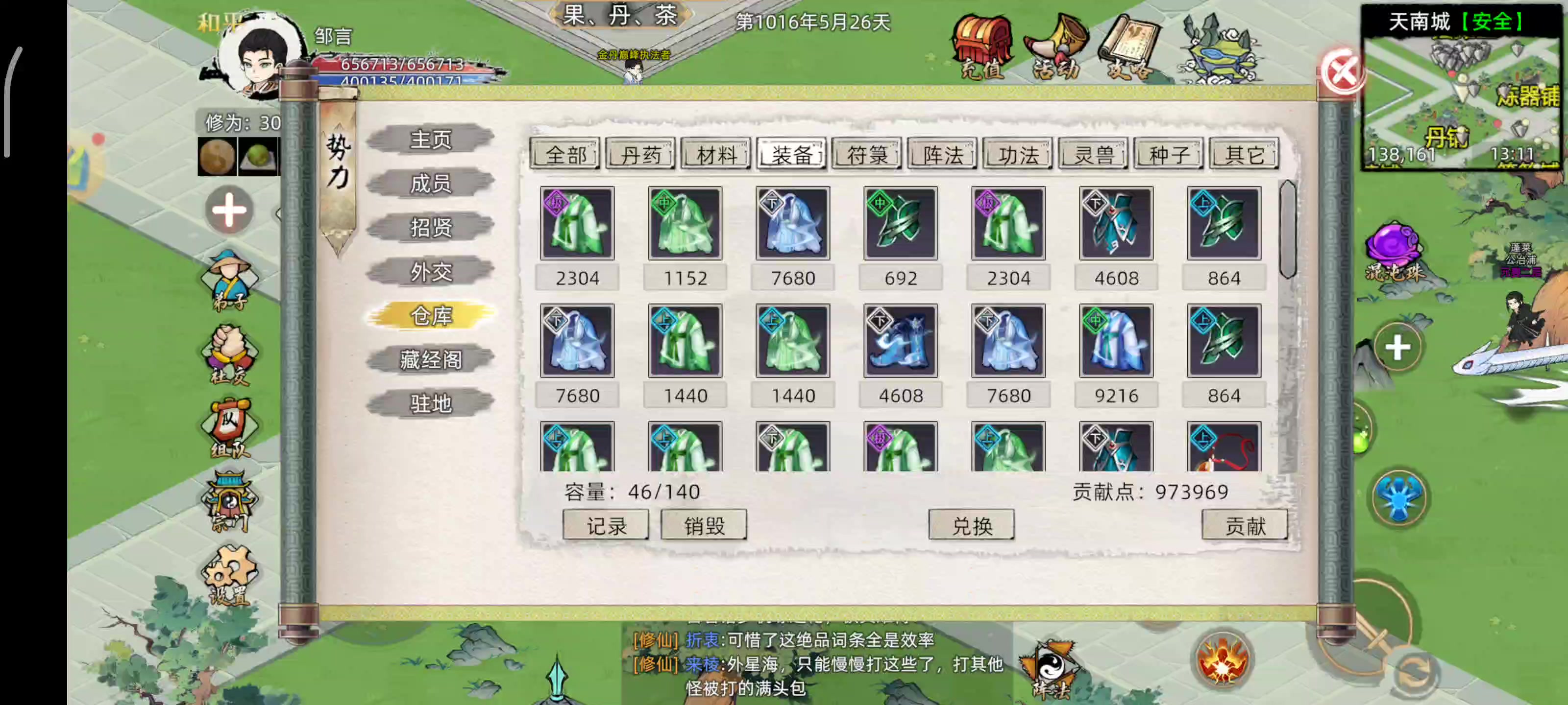 宗门仓库有bug,吞东西,重进了好几次都找不到那把四阶武器了,也没人换走。
