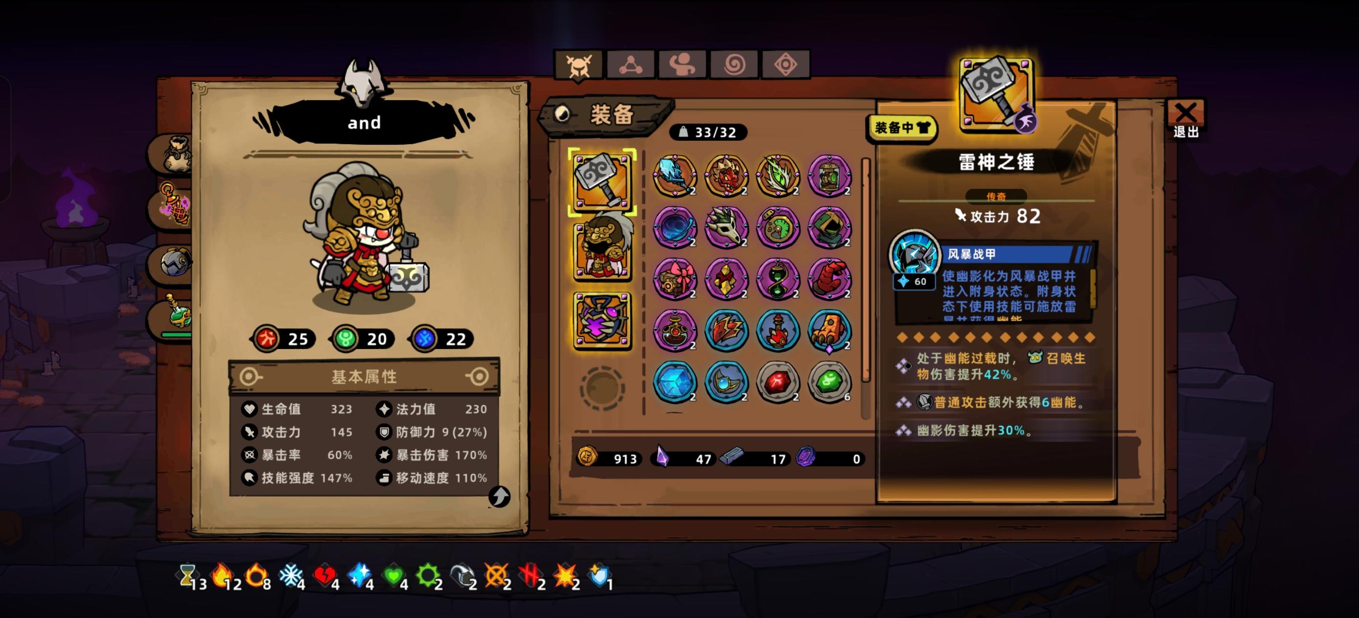 所有武器试完了,只有这个能通关,其它的最多能打最终boss一小半。整个过程就是连滚带爬,靠召唤和自动攻击打。