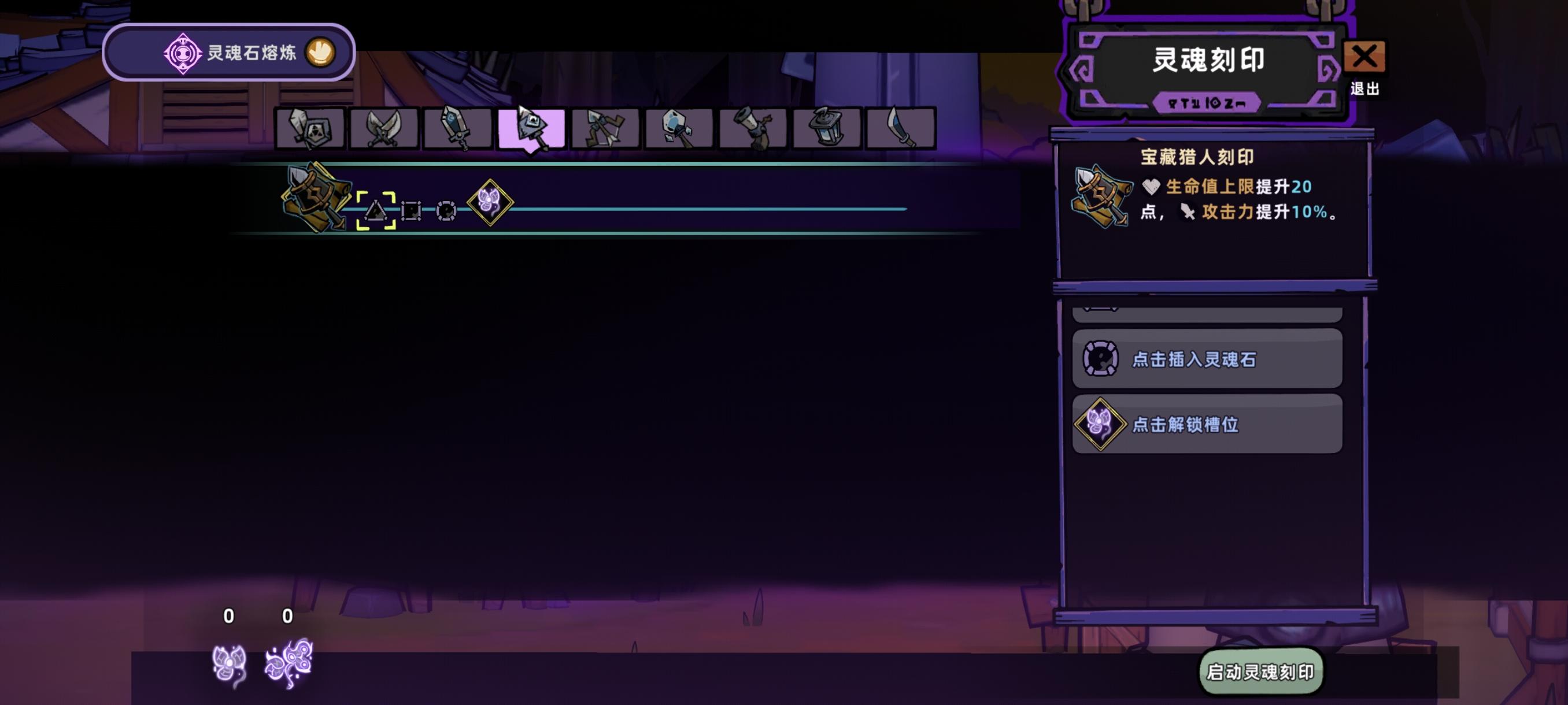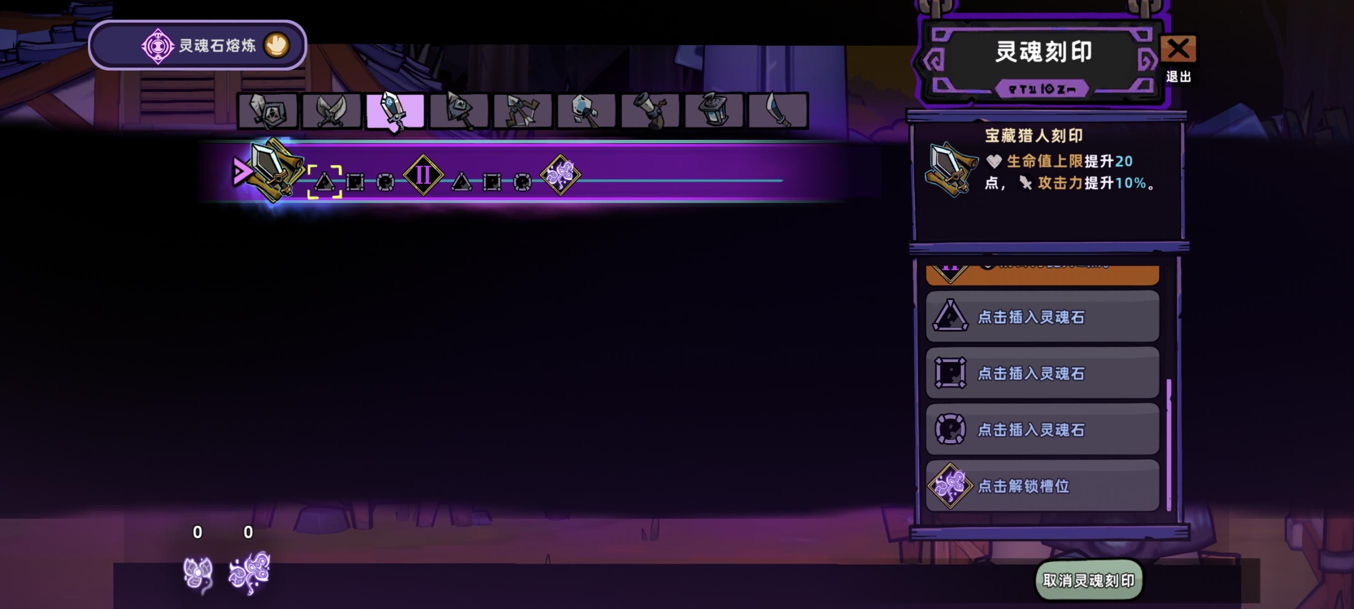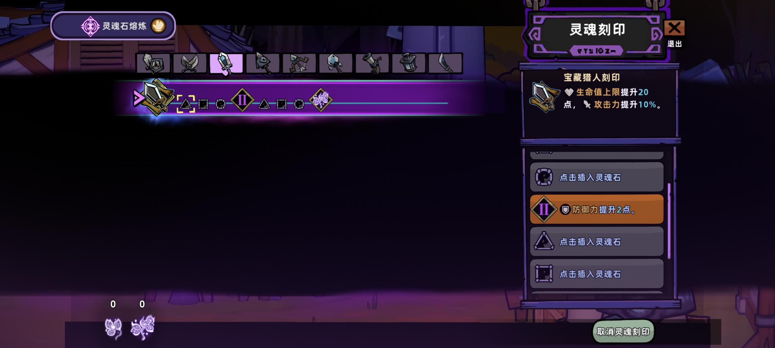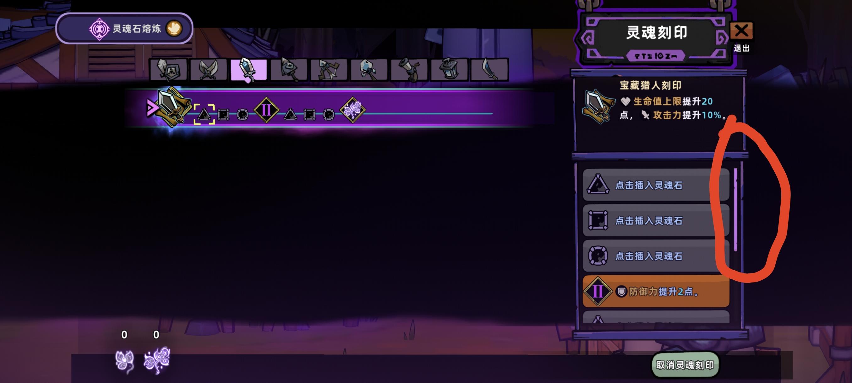 这几个灵魂刻印右侧页面共通的,比如这里双手剑翻到下面后,其他的武器也被翻下去了,不开第二页石头栏无法翻下来。