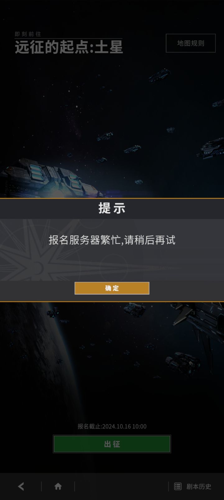 如图,报名失败。无法继续玩了。