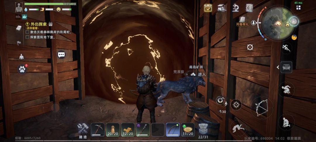 #荒原曙光求生日记 新手刚玩的话 一个是箱子 一个是皇冠 不管去哪里 皇冠的亮光都是生存的必备神器 尤其是去暗黑森林这种东西 眼睛盯着屏幕都要瞎了 有了皇冠才改善一些 特别是挖矿 打虫! 虫在黑暗森林的矿石里 双手采矿就看不清周围 有皇冠就轻松解决 玩家编号:5879317