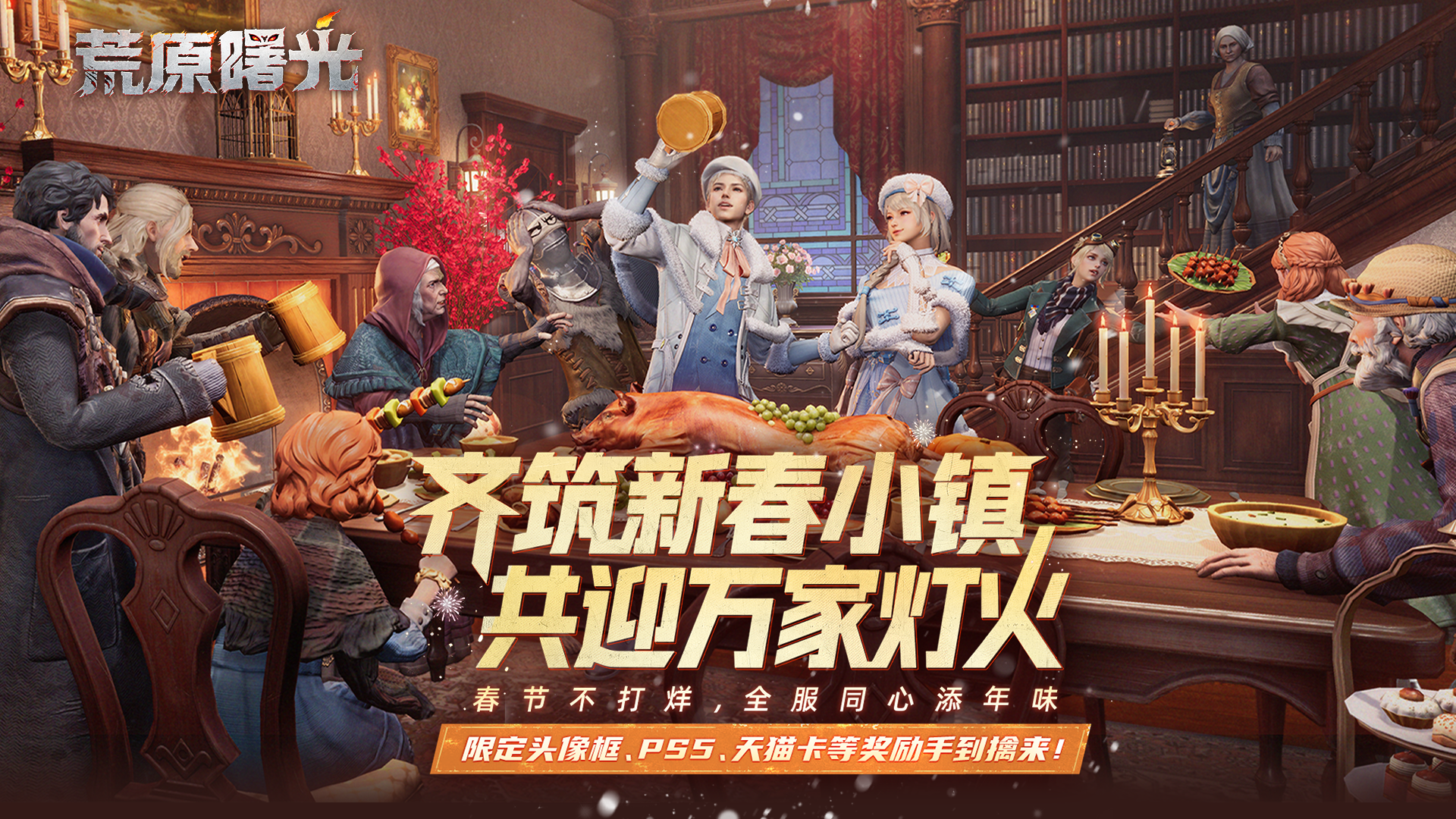 探险家们早上好!《荒原曙光》齐筑新春小镇活动正式开启啦!春节不打烊,全服同心添年味,限定头像框、PS5、天猫卡等奖励手到擒来! 成功参与就有建造师专属头像框、称号奖励!最高还可得绑金*2666、 建筑地块*5、 神秘投掷捕捉器*5等,除单人奖励外,探险家所在公会还能瓜分4w绑金!鱼丸废话不多说,马上为探险家们带来齐筑新春小镇活动介绍!【活动主题】:新春小镇记得幼时听着窗外烟花炸开,一起举