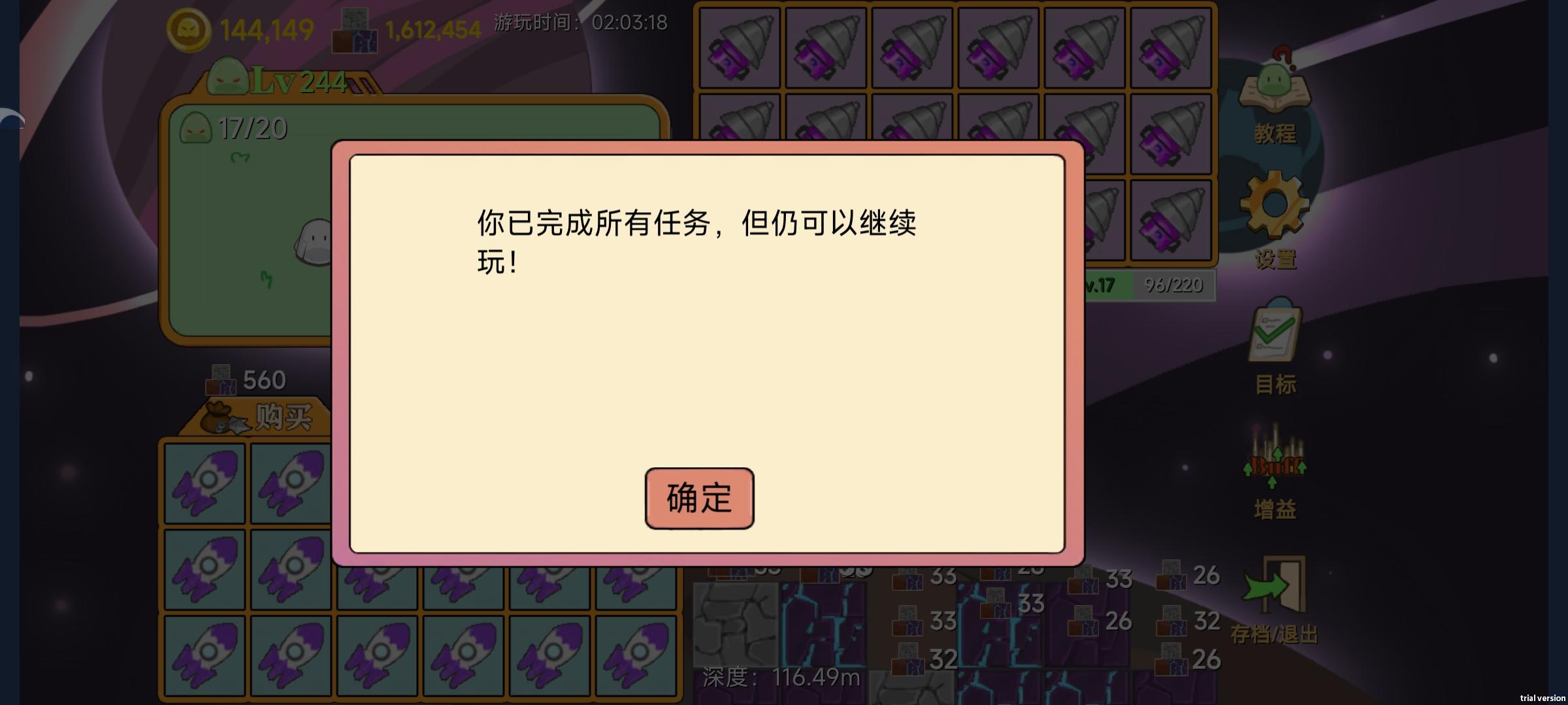 目标比较可有可无,完成了也没有奖励,所以我把所有东西都毕业了才开始提交目标需要的金币
