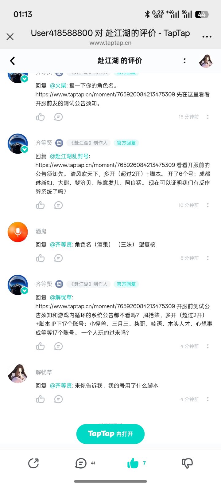 我就想问问我开的是什么外挂,是根据什么检测出我开了外挂的,每天都是玩到凌晨两三点,除了打猛虎就是打山匪都是纯手动的怎么就来个我开了外挂了,希望看到官方能给回复一下别让几年的陪伴寒了心#赴江湖测试