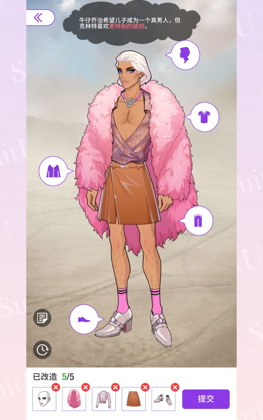 错了一次记录一下。主要就是上衣、外套、鞋子三个要选黑色皮质感的。