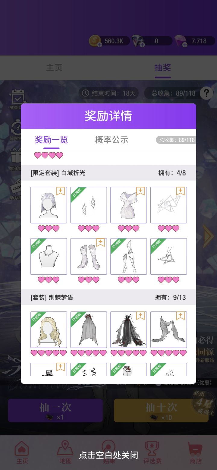 怎么说呢 总体是满意的 虽然落后了这么久的衣服进度 每次搭配比赛都拿不出手什么好的搭配 但是 玩下来的最大感受还是——好良心钻是真的送送送!!!我是之前玩以闪 裙子衣服在3d换装游戏里面肯定是特别能打的 但玩着玩着充了一些却感觉不如不充 大裙子没钻 免费小裙子雷同无爱(当然只是个人的看法)所以退坑了 一直心里面手痒难耐 没有找到替代品然后就刷到太多瞬搭的广告入坑了哈哈哈然后半个月玩下