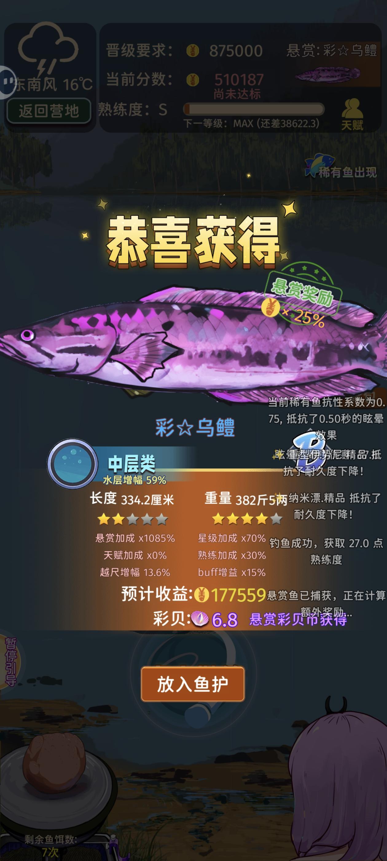 前期太肝了,新手前期不懂天赋组,一天天钓下去非常累,后来找到了专门属于我的懒人神级组合,空城紫金➕低保紫金,一天只用钓一条,中期商店直接搬空,吃低保都能过关😉