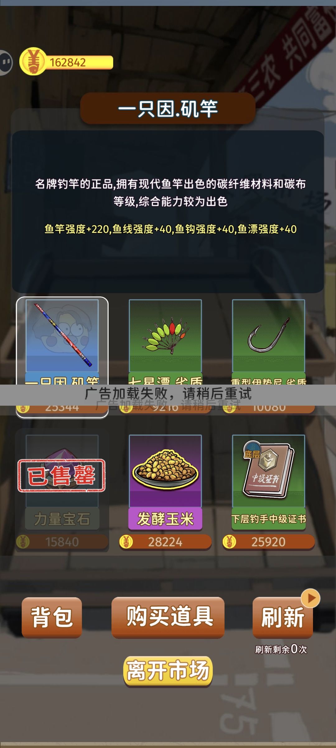 前置知识:漂相 「 黑漂 」:浮漂完全沉下水, 「 移漂 」:浮漂侧面移动, 「 漂亮的口 」:浮漂上顶随后下沉, 「 顶漂 」:浮漂一直上浮到很高。 这些漂相都可以打,成功率都不错,不过黑漂要小心秒沉下去的,很容易是火箭漂,是小鱼在试探,成功率很低。 前置知识:看广告 「 权限禁用 」:游戏目前没有独立端口,运行处于TAPPLAY,看广告之前确保已经禁用了taptap的方向感应权限,最好也禁用