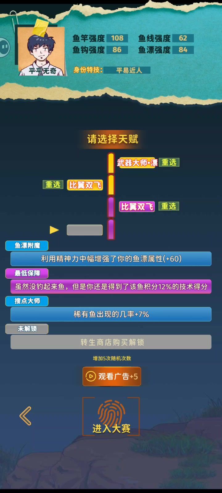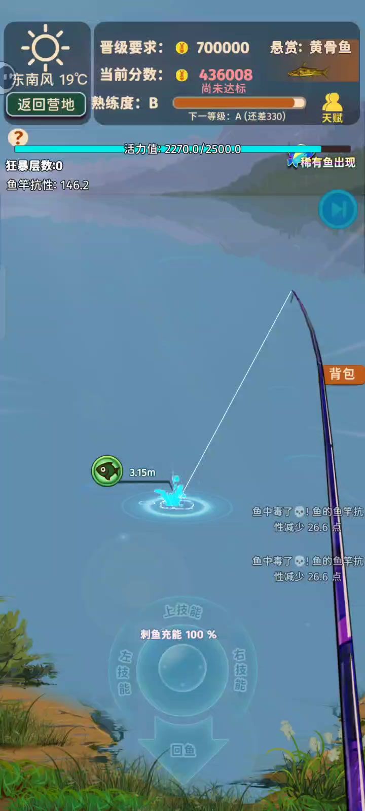 分享一个很重要的进阶点给新手,这个游戏是有漂相和放口一说的。漂相:每种鱼都有固定的几种漂相,比如,白条和一些小鱼会把漂拽跑。草鱼会轻点然后一口吞等等。放口:抛竿以后其实有三次机会钓鱼,并不是说来了口就必须钓,如果你会看漂相,我们就可以把不值钱的鱼放过去,让它吃一些饵不钓,然后再座钓,以达到高收益,对走赏金猎人的玩家尤为重要,如果你看漂炉火纯青,甚至能在只有 30% 悬赏鱼必出的条件下把把都钓到来自TapTap[ID:16284980 沙瀑爱]