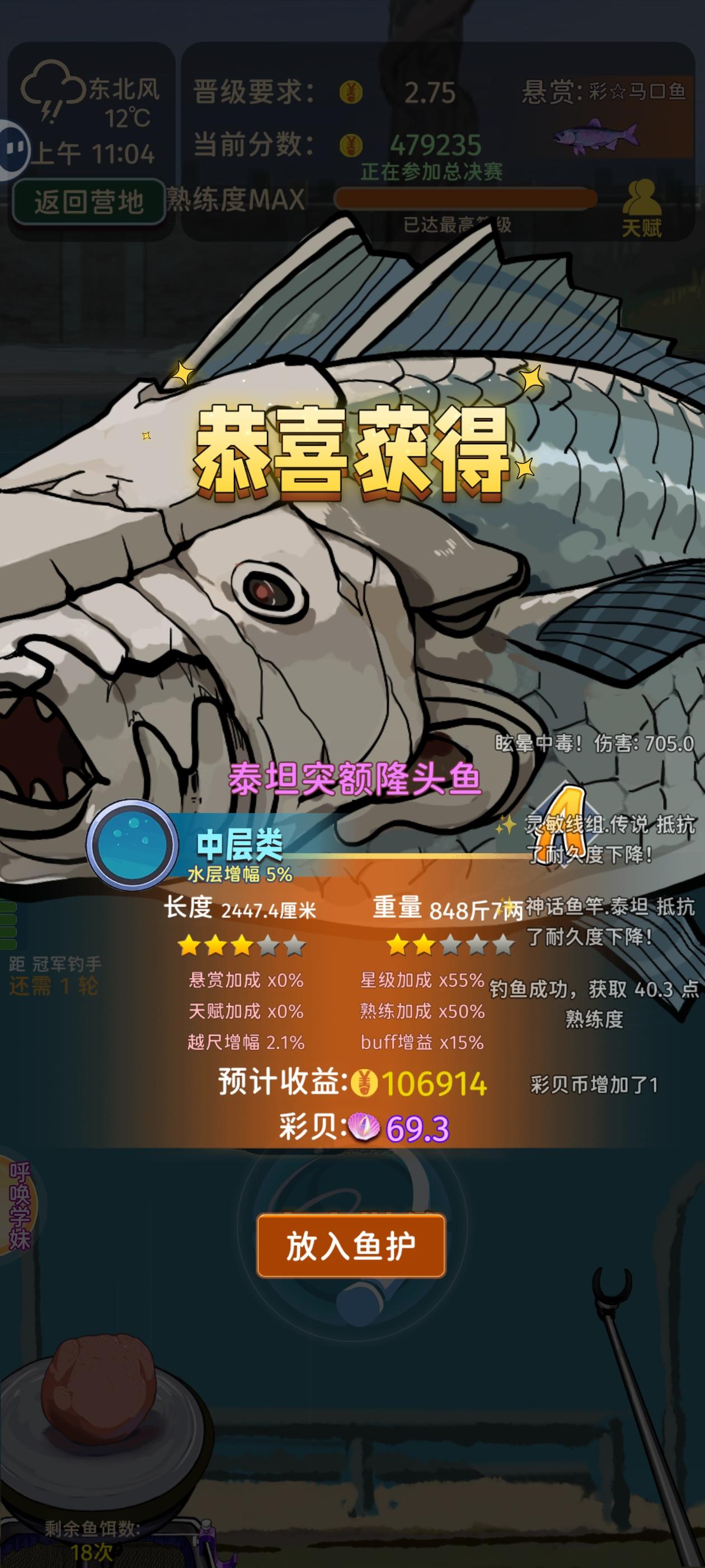 三个什么都能钓+鱼竿附魔+满月灵视+小田花特训+金灵敏+金新关东+金七星 勉勉强强过的 太费劲了
