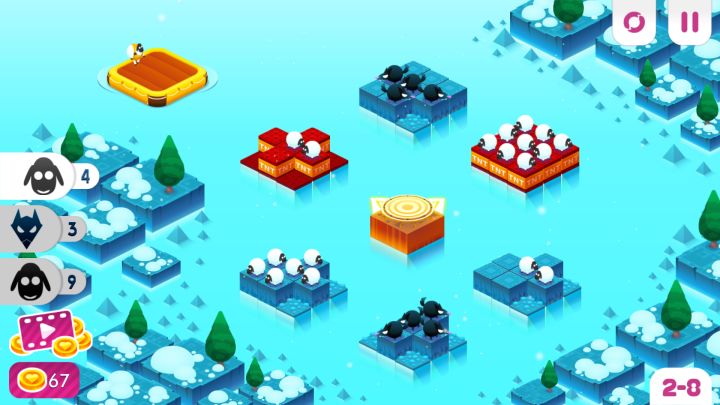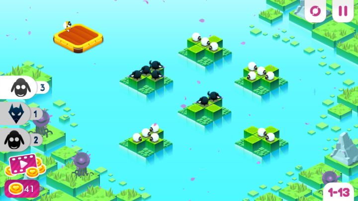 《绵羊鸿沟》(Divide By Sheep)是由BreadTeam小组开发,tinyBuild发行的一款棋盘移步类解谜游戏,游戏画面和看上去十分小清新,色彩明亮3d的动物,低多边形的画面,bgm也是欢快的不行,但是其中的生存法则真是血腥残忍。游戏的主要玩法很简单,是根据游戏的规定数量来移动分离和合并动物并把他们移到小船或者浮板上。游戏除了解谜还有休闲益智的成分,怎么移动就需要玩家的思考了,而且