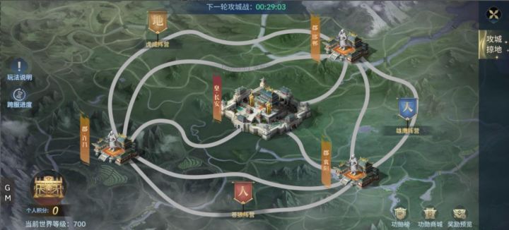 开服2天后即开启本服攻城战,以帮派为单位进行竞争,每天4场; 每个城内有若干BOSS,把BOSS击杀后所属阵营将获得相应积分; 开服6天后即进入2跨模式,地图将更换,玩家将以服务器为单位进行对战; 玩法产出乾坤祖符,跨服进度和世界等级提升后,乾坤祖符的产出等级也随之提升; 乾坤祖符和装备系统类似,拥有整套合成,升星,进化,替换等功能。