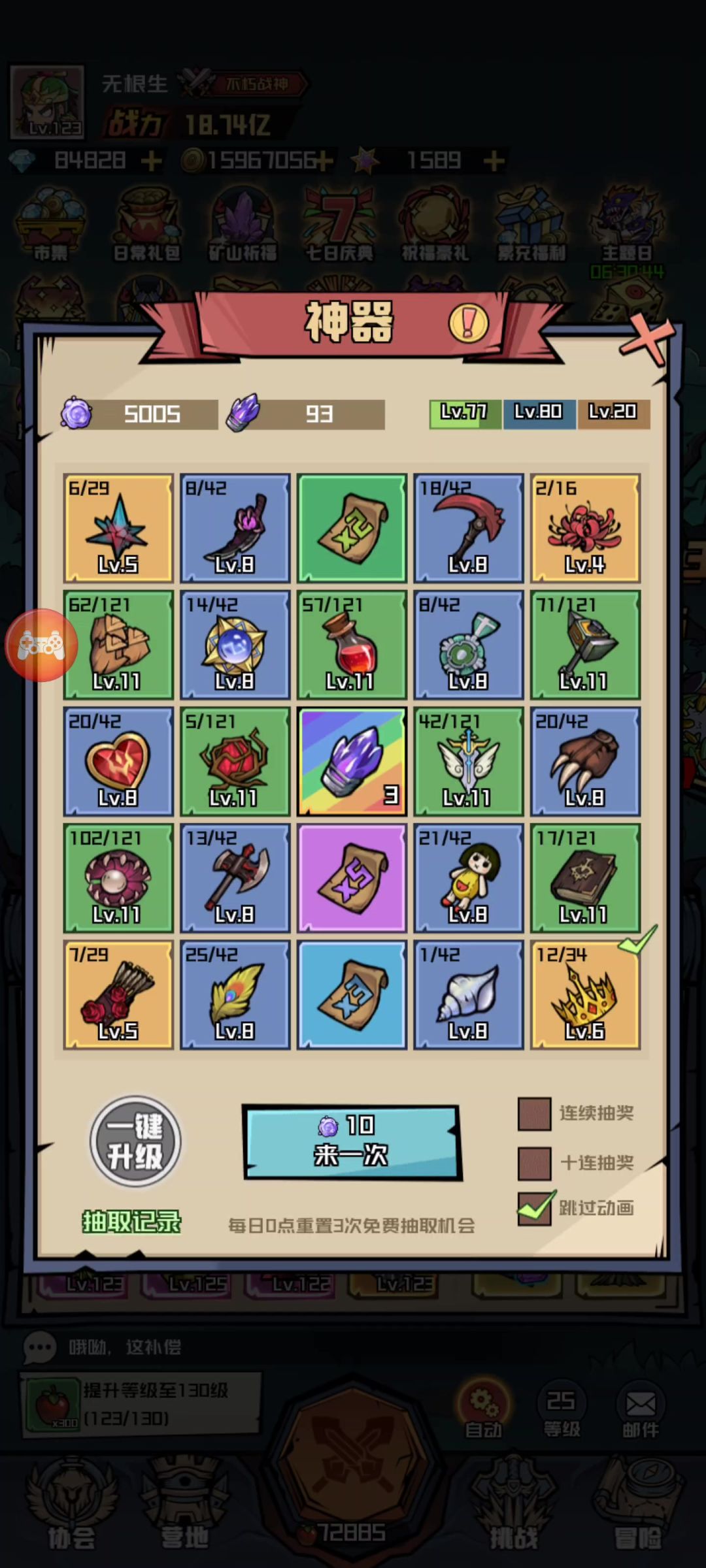 升级个法环战力降了4亿 神器切换 战力涨降不一致 纯搞笑么不是 自动战斗自动分解的武器品质低但是战力提升 它照样分解🤣我笑了