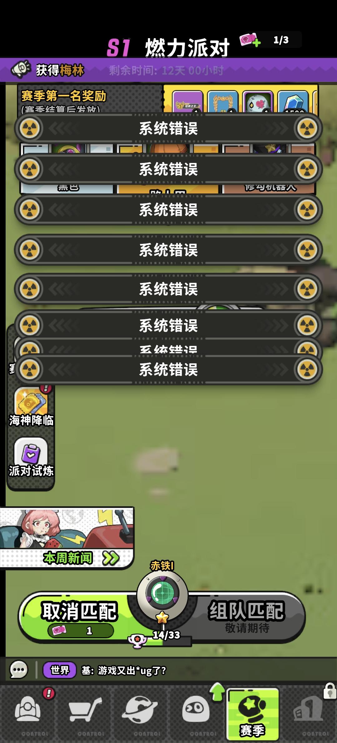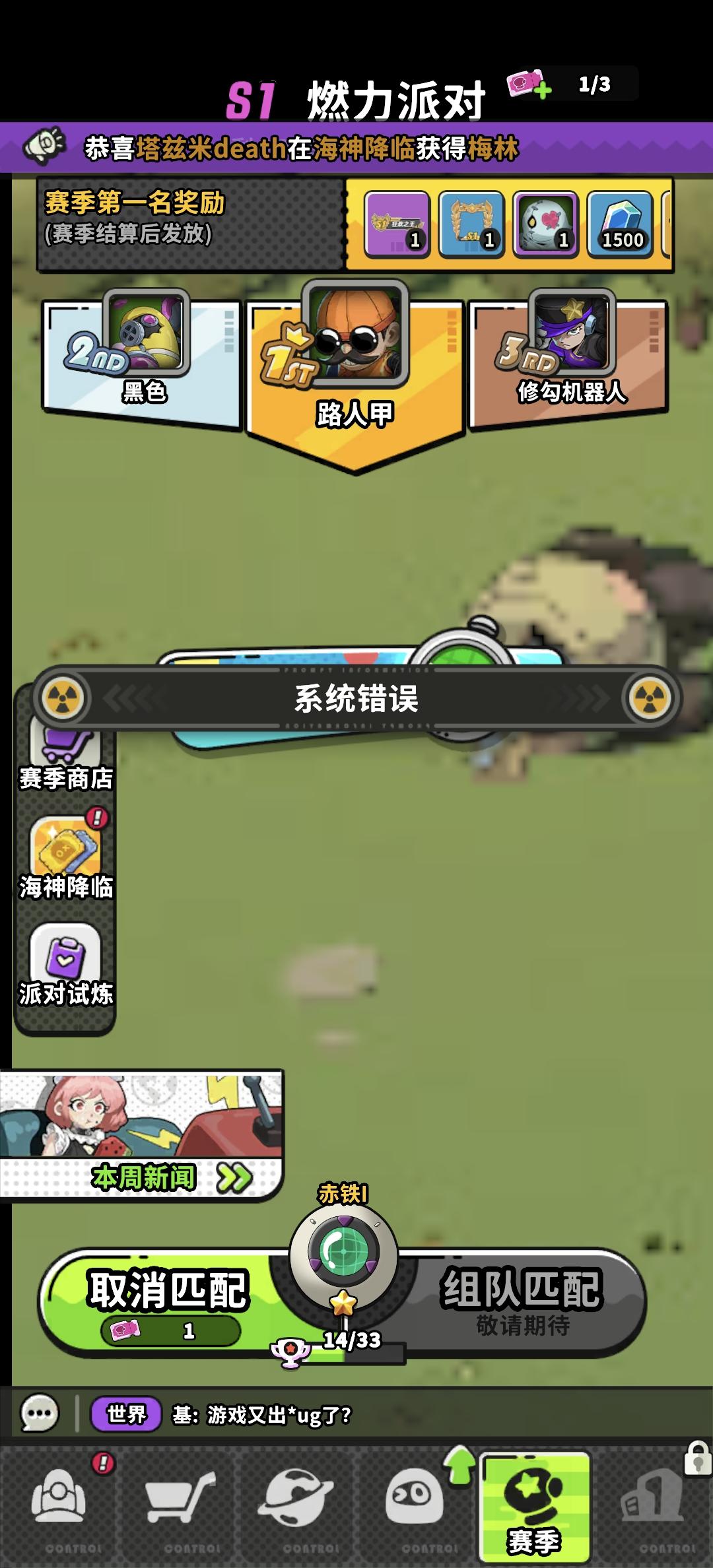BUG反馈,匹配完成后显示系统错误