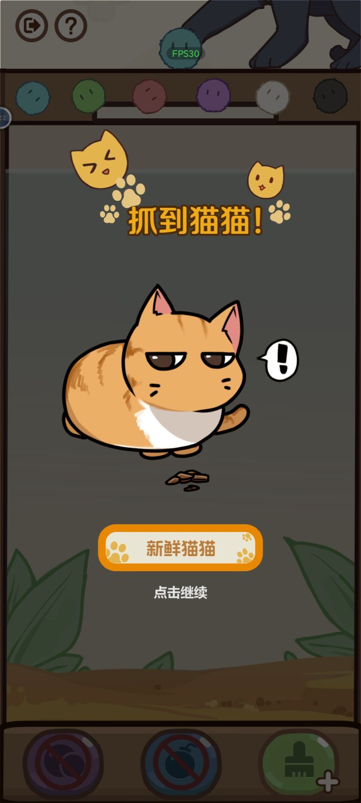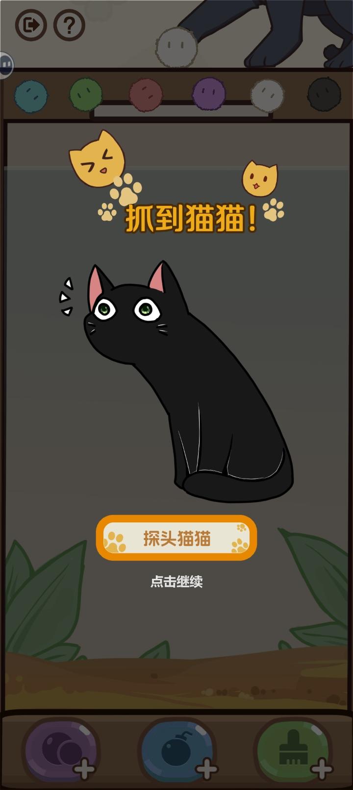 2D美术品质还不错,画风有点小清新,猫咪解锁后才能看到,一般状态下只能看到猫咪半身,并且有拨动毛球的动画。