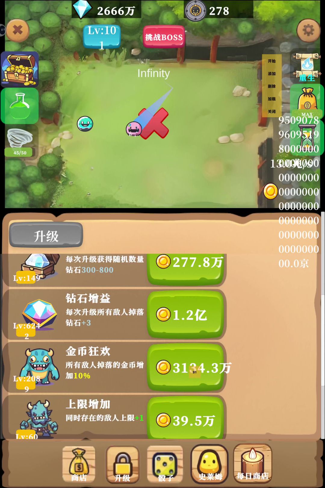 如图,金币狂欢有bug,升个几十级数据直接爆炸