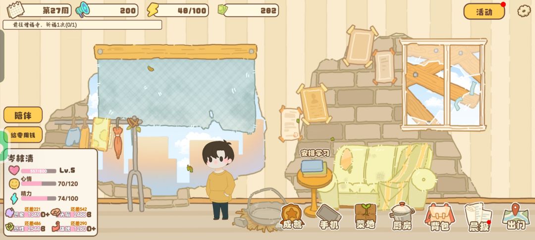 1.行动力 在牛马大街有一只小猫5行动力摸一下得15行动力 旧西方的洗浴中心50💰得20行动力 2.怎么赚钱 关注晨报活动可以发现: 低价折扣:收低价便利店物品去当铺卖出(菜类建议做成菜在卖出) 钓鱼卖出:两个部分,一个蓄力,一个拉杆。蓄力尽量去靠近百分百,拉杆就是考验大家的能力了,也是尽量去靠近蓝色末端,不是黑色喔!(注意!!!便利店收来的中高级鱼饵不要在当铺卖出,攒起来去钓鱼卖,收益会高!3万