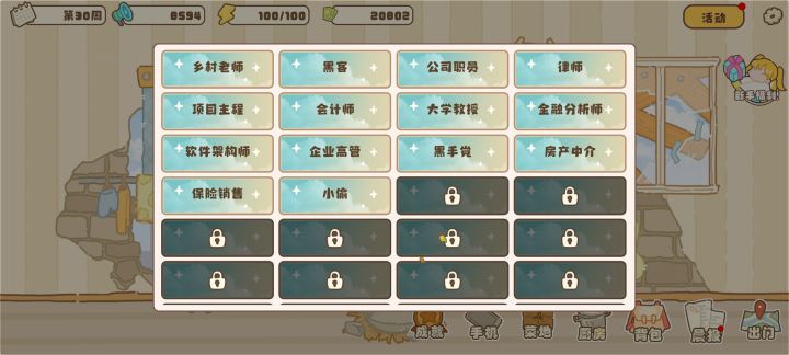 游戏没有结局数值提醒,盲打推测的要求,不一定完全准确。1.乡村教师 顺利毕业且仅文学值过20002.黑客 拿满学分毕业且黑暗值过10003.小偷 未拿满学分毕业且黑暗值过10004.房产中介和保险销售 未满学分毕业(无体力,心情等附加要求)5.律师、项目主程和会记 ①想象3000+,头脑3000+ ②文学值1500+,技术值1500+ 6.大学教授、软件架构师和金融分析师