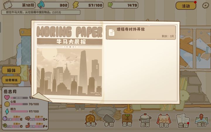 1.每天都要去垃圾桶翻一翻哦,然后去当铺把上涨的物品卖掉2.每天去一次浴室按摩可得20行动力3.记得每天关注晨报,可以及时参加4.如果码头和增福寺开放一定要去!#百亿家族 #百亿家族攻略福利蛮多的 #百亿家族游戏安利 #百亿家族攻略