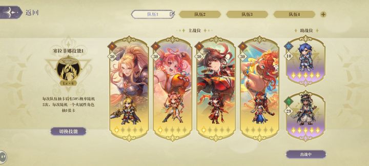 对敌方最前方的目标造成攻击力*30%的【风属性】伤害每次队伍抽卡时,获得300点怒气*怒气:用于必杀技消耗选择一名己方目标,基于自身6%的攻击力提升目标的攻击力,并消耗自身所有的【旋律】,每消耗1层将恢复目标的怒气值200点选择一名敌方目标攻击1次造成攻击力*80%的[风属性】伤害,并为自身添加1层【旋律】选择一名己方目标,回复怒气值50%,并提升其20%的伤害,持续15秒*怒气:用于