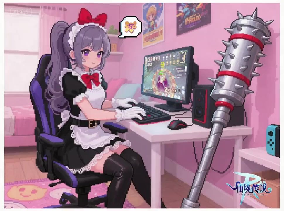 卡普拉的秘密 在普隆德拉的广场上,大家早已习惯了那个身影——挺着胸、梳着高高马尾、穿着整洁女仆装的卡普拉。她们总是笑容甜美地为冒险者们存储物品、传送各地。 但很少有人知道,卡普拉并不是只会“存物品”的温柔小姐姐。 夜幕降临,广场的灯火渐渐熄灭,街道上只剩下巡逻的卫兵。这时候,仓库里传来“咔嗒——咔嗒——”的金属声。 “呼……终于可以下班了!”卡普拉一边解开头上的头饰,一边从柜子底下拖出一根