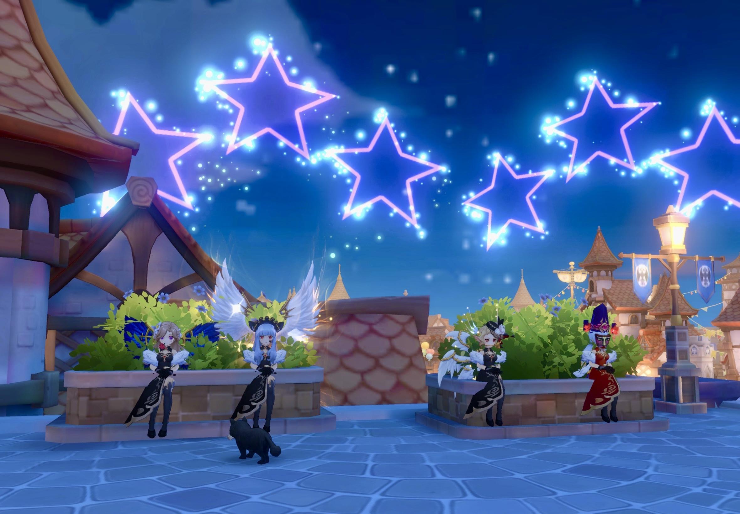 圣诞节这天,圣诞老人的马车半路抛锚,紧急任务的信函径直飞到了奥斯卡的手中——代替老人家,给主城各处的NPC与小魔物们送去圣诞礼物。 奥斯卡转身招呼上自己的小徒弟,少年眼睛一亮,当即精神抖擞地摆了个帅气的起手式,兴冲冲地应下了这份满是节日气息的差事。 两人的第一站是姜饼城的小帐篷,红鼻子验票员接过礼物的瞬间,惊喜得差点把头顶的帽子甩出去,鼻尖的红晕都透着雀跃。 接着,他们赶往南门,在宝雅