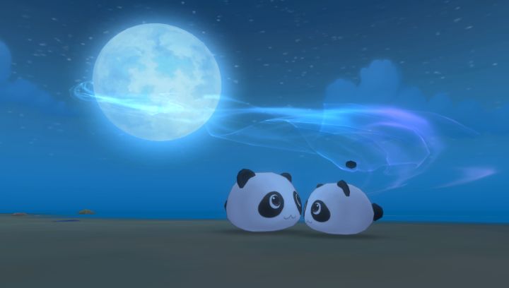 落日浅滩的黄昏总是温柔的。海水退去后,露出一片湿润的沙滩,礁石在余晖中投下长长的影子。就在最大的一块礁石旁,两只毛茸茸的生物正并排趴着,惬意地啃着嫩竹笋。那是两只熊猫波利,圆滚滚的像两个蓬松的毛球。通体是暖融融的乳白色,但背部、耳朵和眼眶周围,点缀着墨黑色的波点花纹,在夕阳下泛着淡淡珠光。一只叫墨墨,眼珠总是滴溜溜转,透着藏不住的好奇。一只叫白白,波点大而疏朗,眼神温吞沉静。此刻,墨墨正用爪子