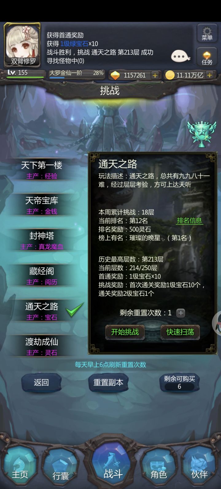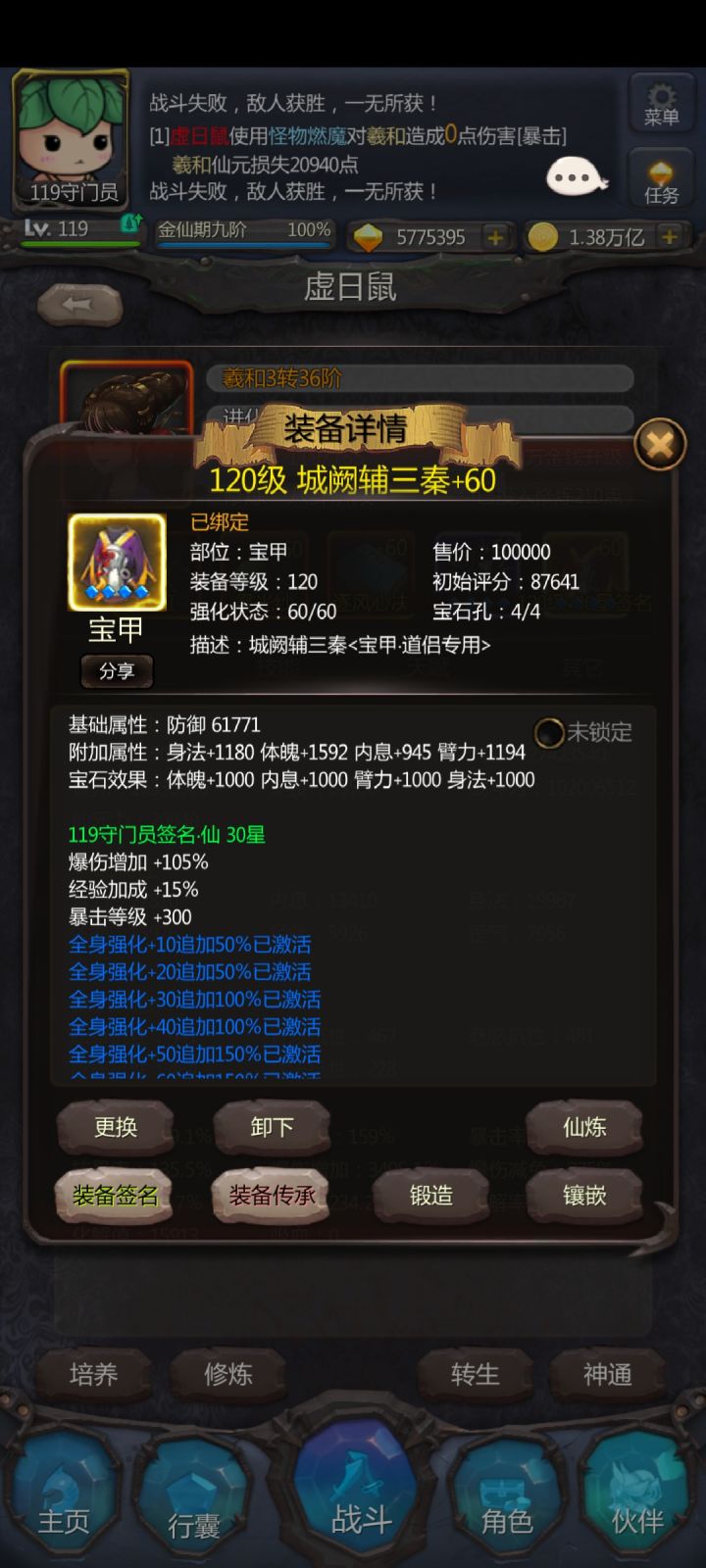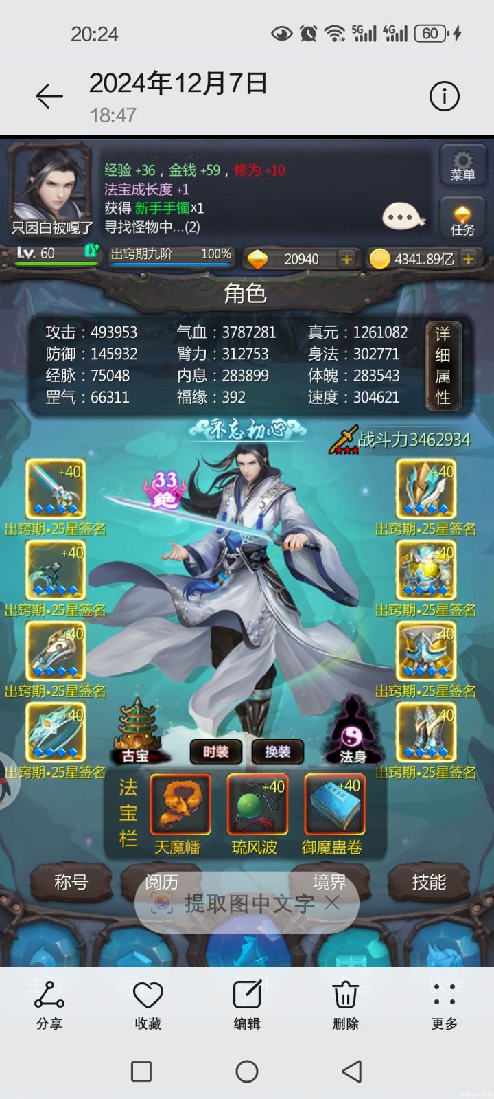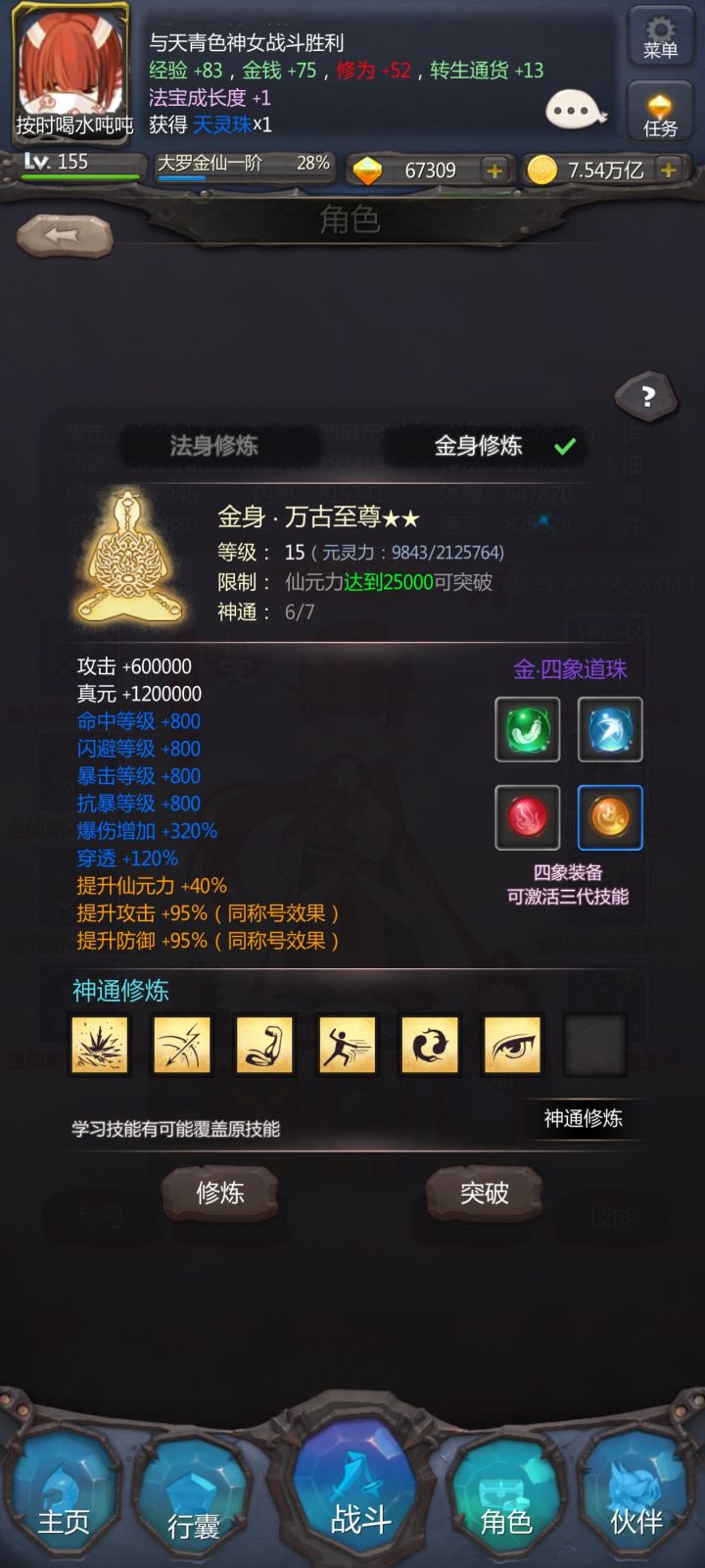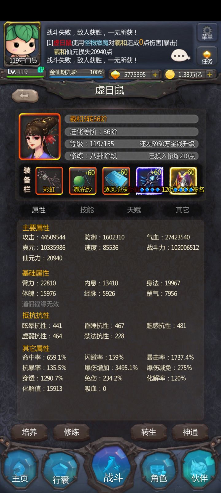 金丹119的号复制到了行者,女神拉满,金法16,全身强化60,签名缺经验,道侣23位奇术也缺经验,所以没搞,女神神通除了等级,其他的与金丹区的号差别不大,后面会发金丹区的详细属性图做对比,2-6楼是行者区详细截图,金丹目前法13金15,7-12楼是金丹截图