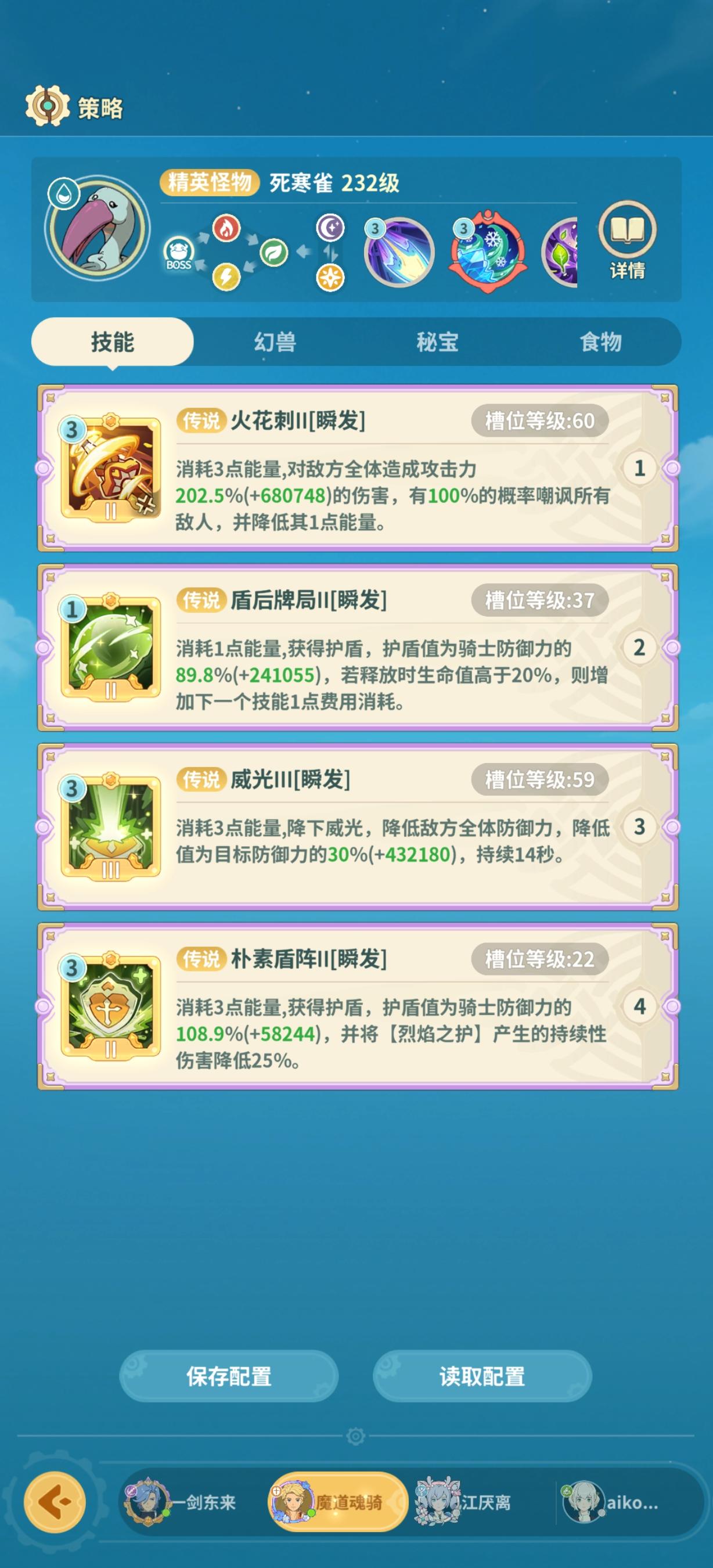 氪金篇狩猎季30天目前第5天第一天等级23级(满队4速)第二天等级32级晚上10点结算第三天等级39级第四天等级44级晚上10点结算第一天礼包买完1200元左右。重点购买成长礼包,双卡一证,没有什么特别活动,邀请码四个人组队一定要1填2,2填3,3填4,4填1 确保都能吃到一个氪金关卡的保底,其余三个位置找路人即可18级正式开启提升战力之路。然后就一直推图就可以了这里推荐阵容骑士