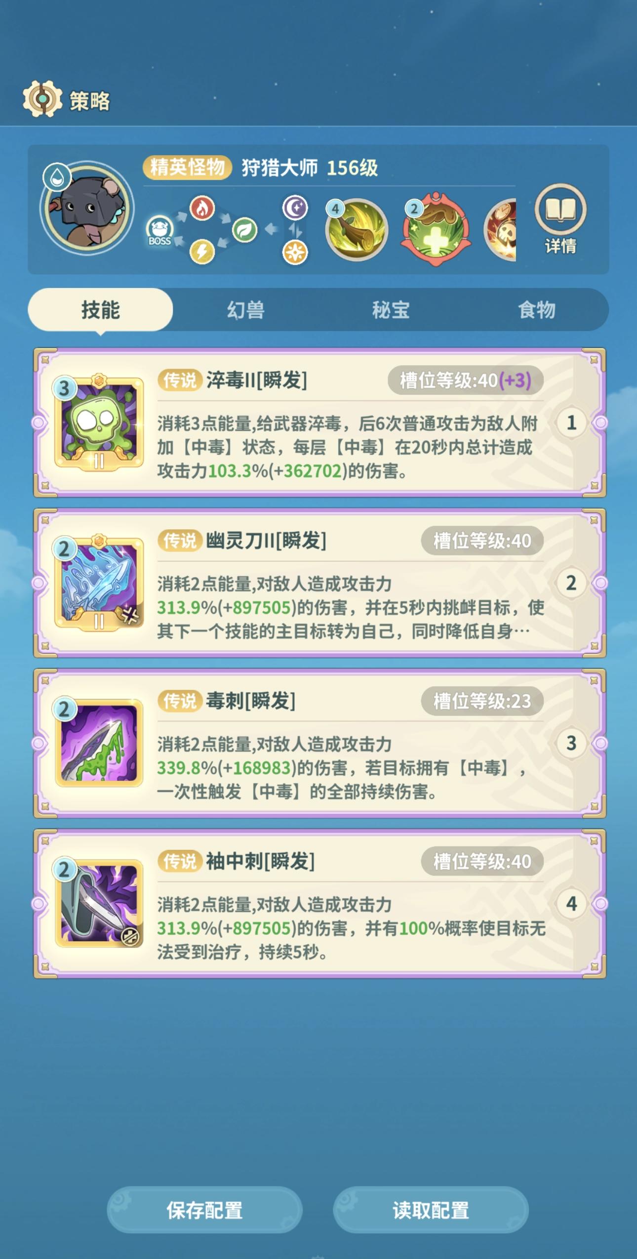 从阿卡塔绿洲开始 记录一下自己队的技能队伍配置: 骑 巫 法 学越级:正常越3 极限越4想来抄作业 没找到 自己做一份记录从150才开始 前面稀有boss没记*肯定不是唯一解,只是正好我们用这套过了#云海之下组队冲榜 图1-4 快拳乌比(小怪)图5-8 诅咒姆拉比(160稀有)图9-12 巨嘴乌鸦图13-16 火爆阿力