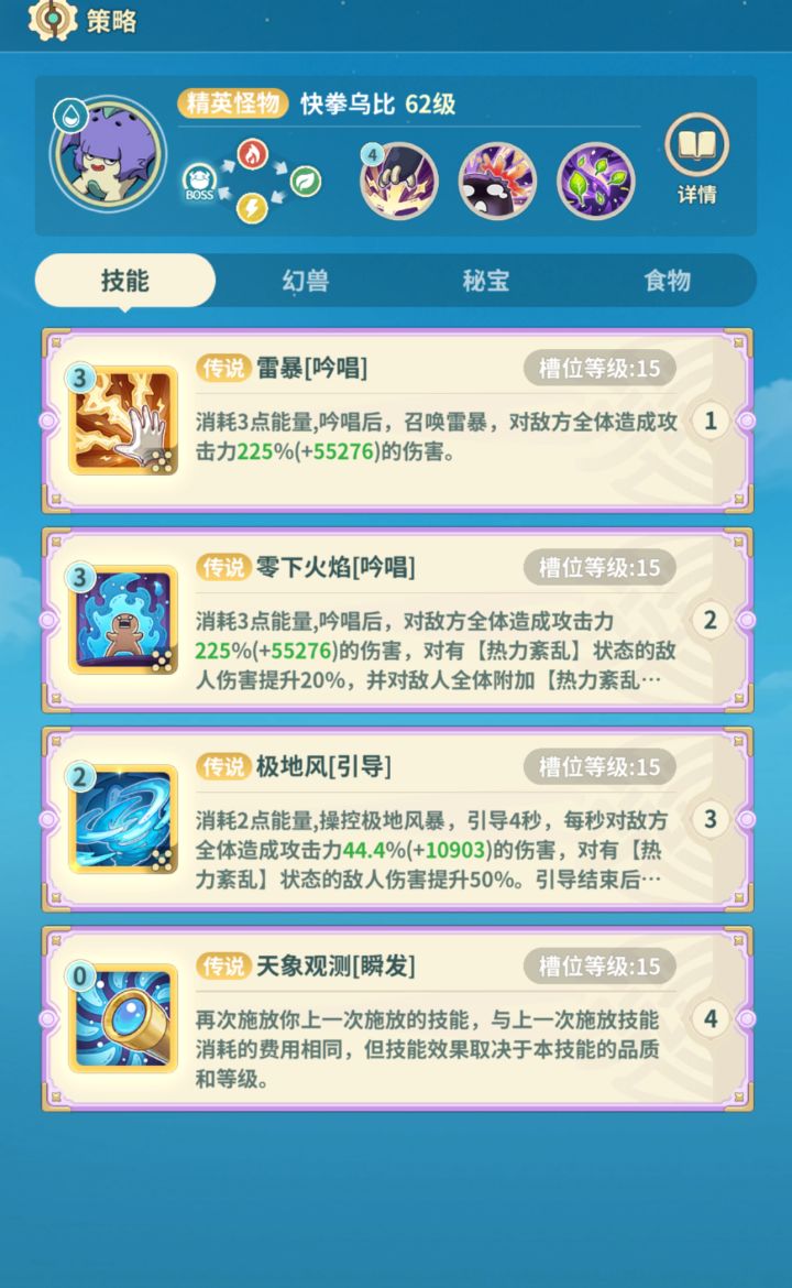 从阿卡塔绿洲开始 记录一下自己队的技能队伍配置: 骑 巫 法 学越级:正常越3 极限越4想来抄作业 没找到 自己做一份记录从150才开始 前面稀有boss没记*肯定不是唯一解,只是正好我们用这套过了#云海之下组队冲榜 图1-4 快拳乌比(小怪)图5-8 诅咒姆拉比(160稀有)图9-12 巨嘴乌鸦图13-16 火爆阿力